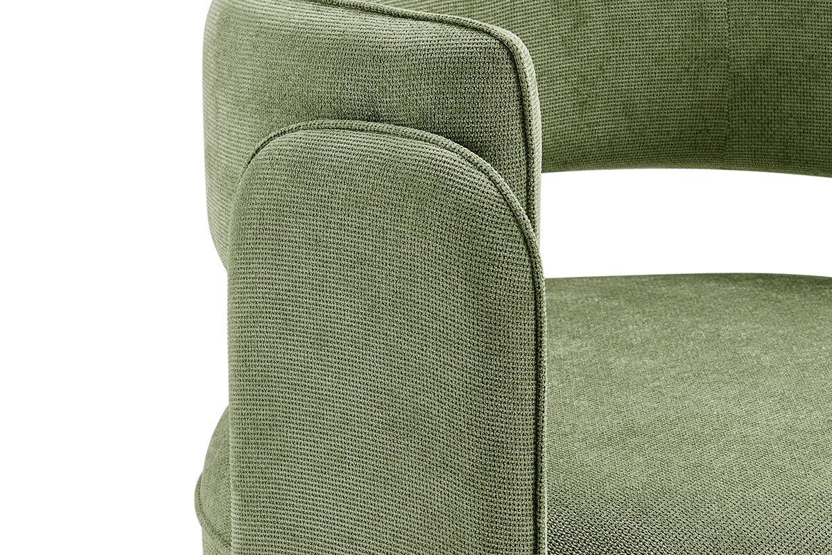 The chair is upholstered in a soft polyester-nylon blend that feels inviting and stands up to daily use. Its textured finish adds depth and warmth, while the easy-care fabric makes cleaning simple.