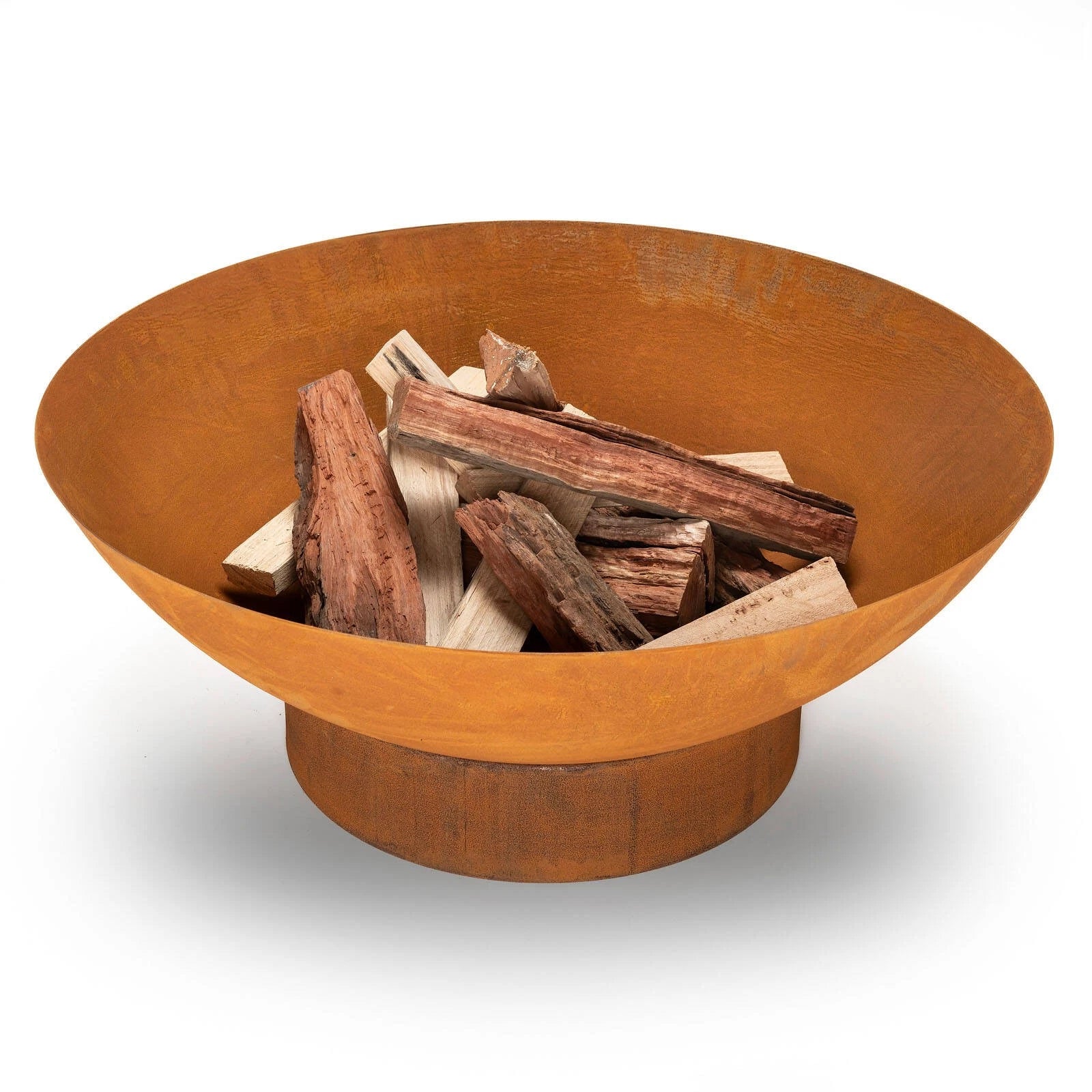 Ignite your outdoor entertaining area with the Mimosa 70cm Rustic Steel Round Fire Pit. Featuring a generous fire bowl volume, it provides ample space for a cozy fire. Please note, this fire pit is intended for outdoor use only and is not recommended for use on timber decking or other combustible surfaces..