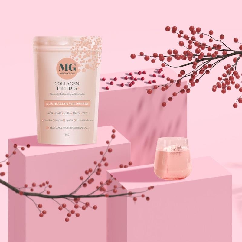 Elevate your wellness routine with Mind Glow's Australian Wildberry Collagen Peptides+. This premium collagen powder is designed to enhance your skin, hair, nails, and overall health.