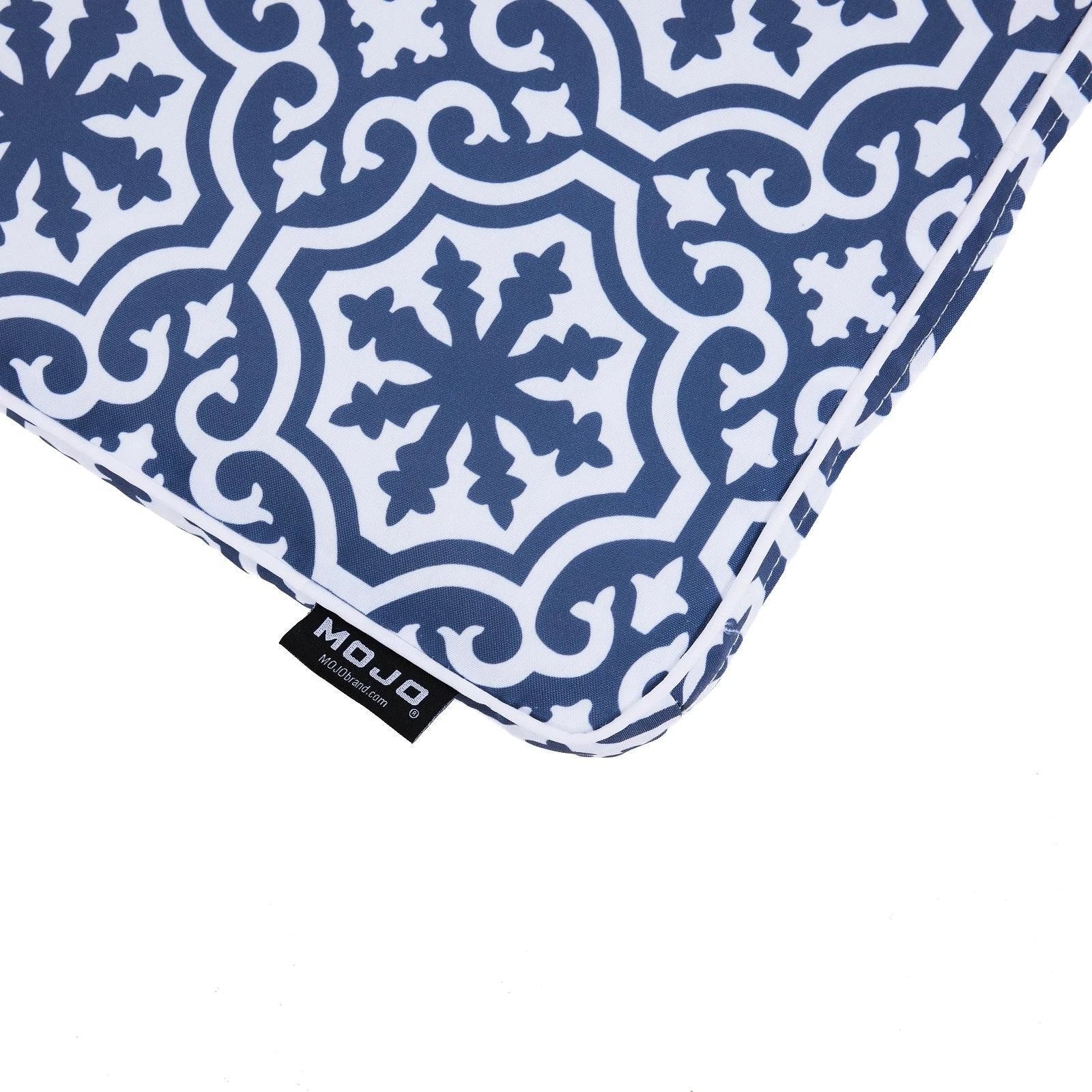 Enhance your outdoor seating with the MOJO Blue and White Marrakesh Square Cushion. Designed for durability and comfort, this versatile cushion is perfect for any outdoor chair, providing a stylish and practical addition to your outdoor space.