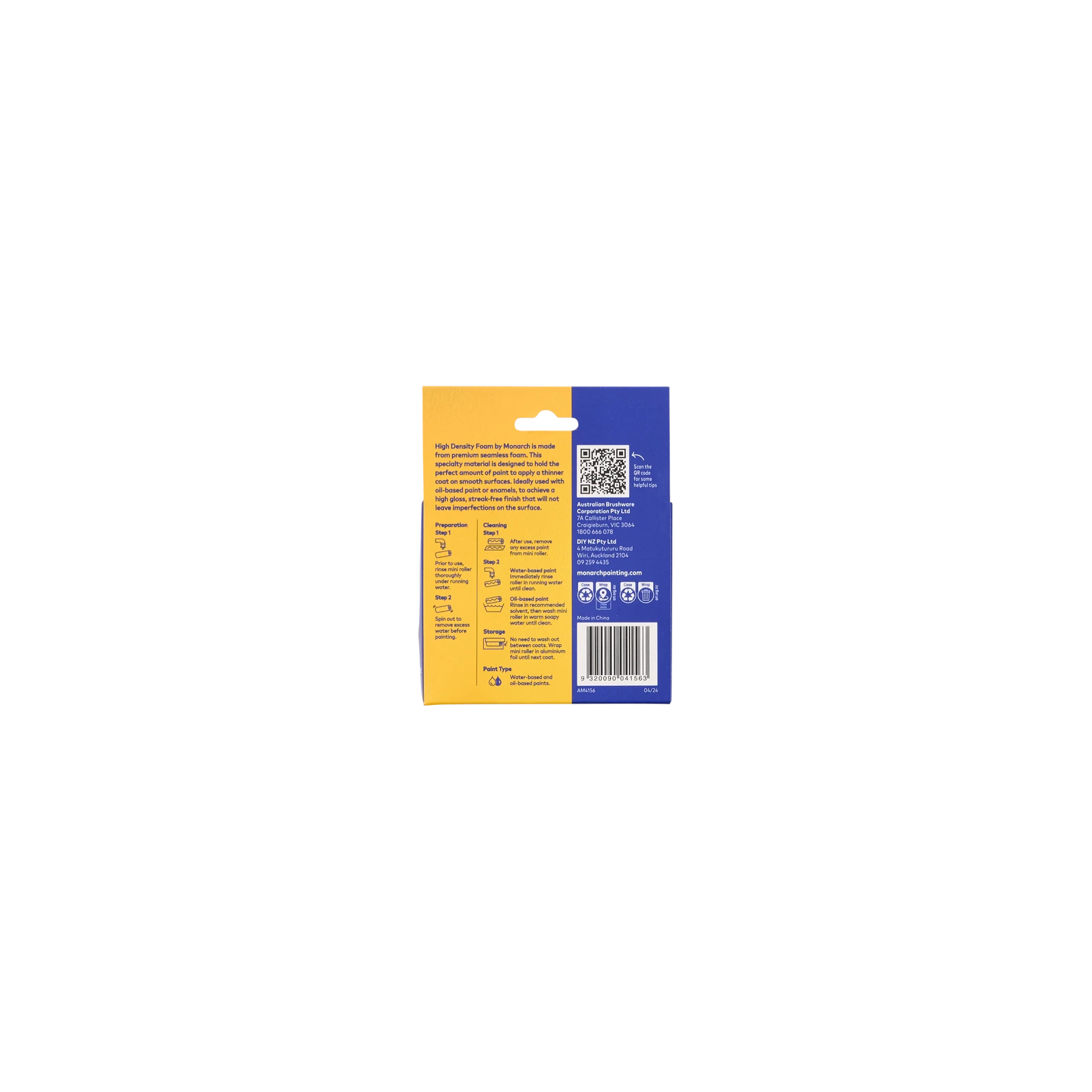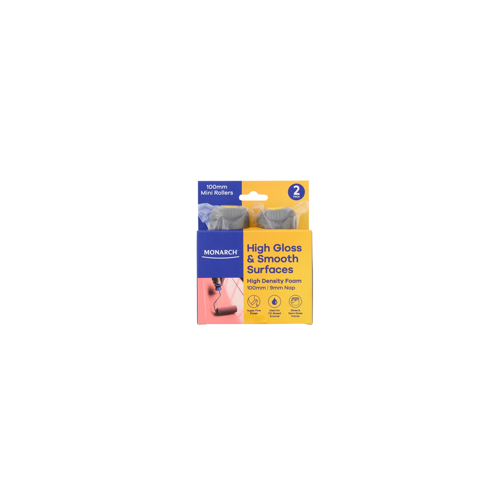 Achieve a flawless, high-gloss finish with the Monarch 100mm Dark High Density Foam Mini Roller. Designed for smooth surfaces and oil-based paints, this pack offers reliable performance for your painting projects, whether you're working on doors, cabinets, or metal surfaces.