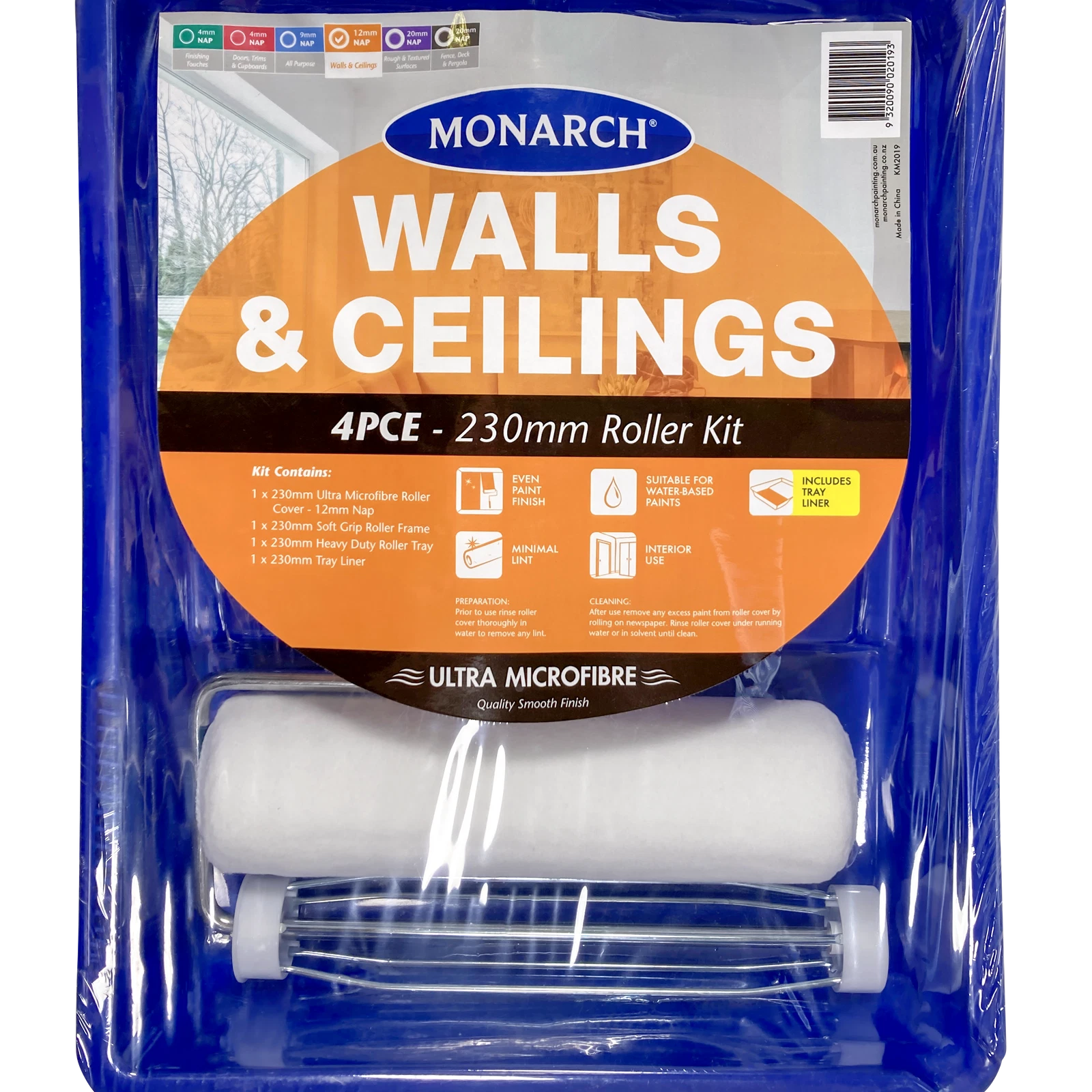 The Monarch 230mm Walls & Ceilings Ultra Microfibre Roller Kit includes everything you need for a professional-quality paint job: