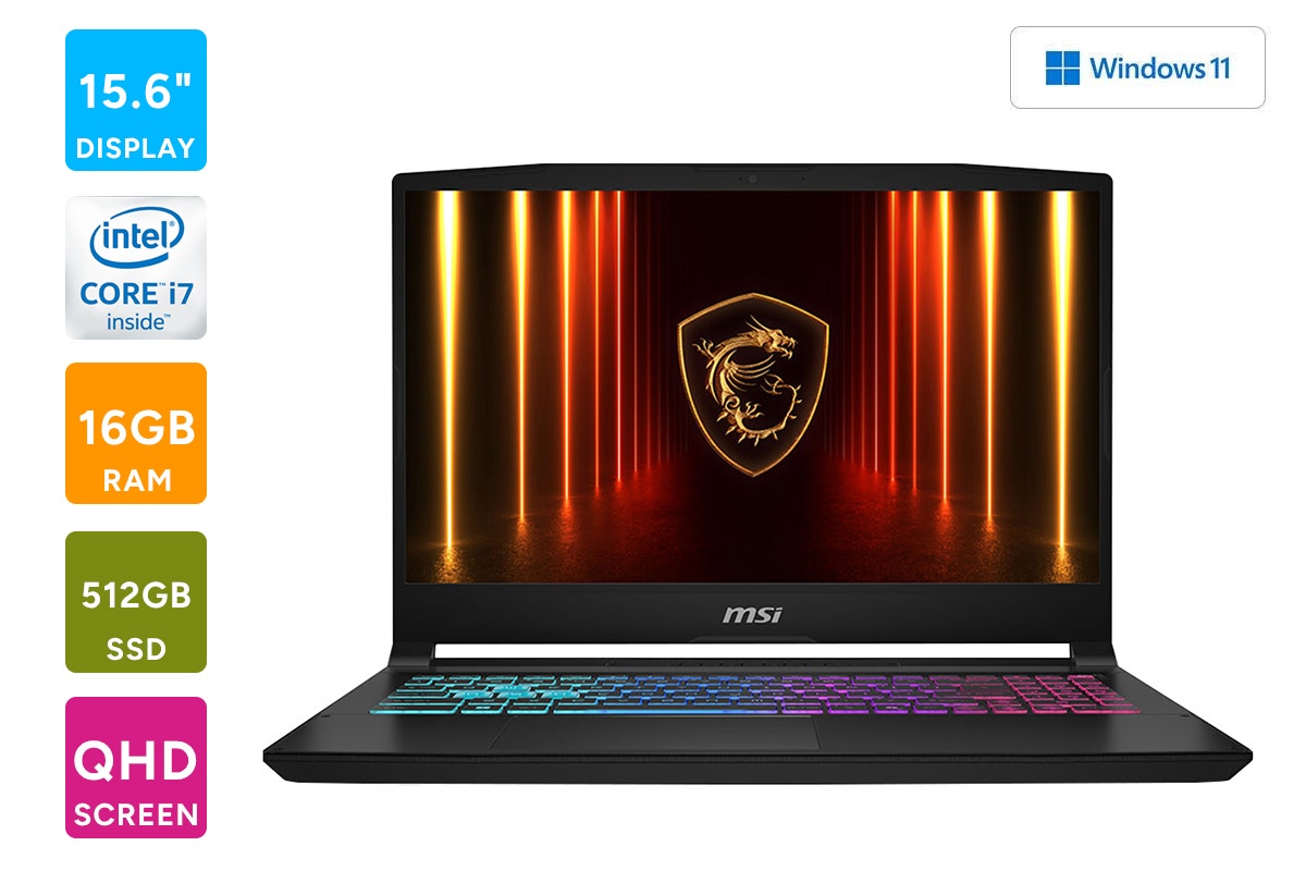 Experience elite performance with the MSI Katana 15.6” QHD 165Hz Windows Gaming Laptop, designed for fluid, high-FPS gameplay. Powered by a Intel Core i7-14650HX Processor and NVIDIA GeForce RTX 5050 Graphics, it delivers smooth multitasking and stunning visual fidelity.