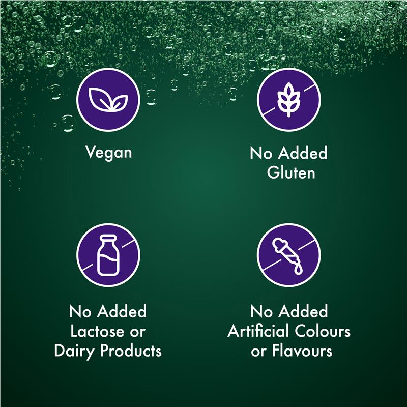 Contains: No added gluten, lactose, artificial colors or flavors, dairy products, or animal-derived products. Vegan.