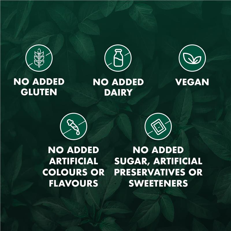 Contains: No added gluten, lactose, sugar, artificial colors, artificial flavors, artificial sweeteners, artificial preservatives, dairy products, or animal-derived products.
