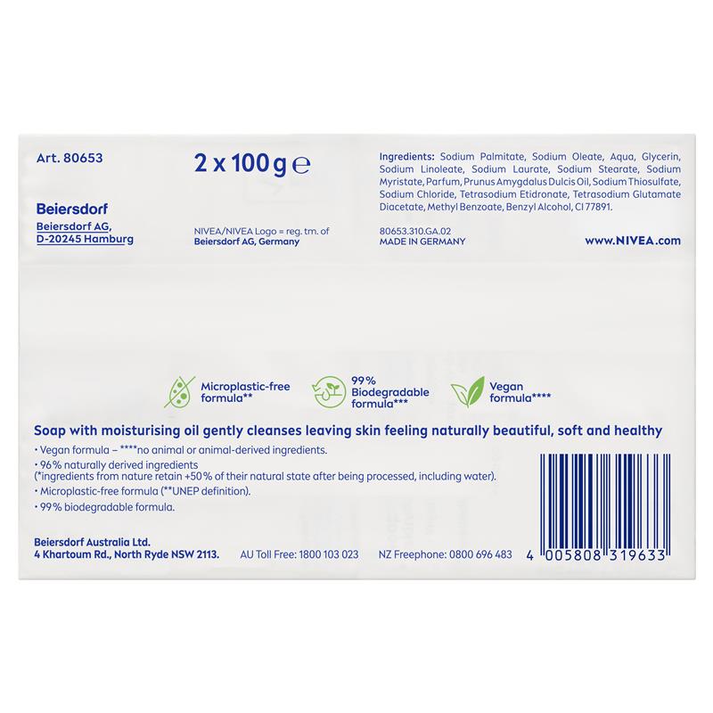 NIVEA Crème Soft Caring Soap Bars are enriched with almond oil, which has skin care benefits, leaving you feeling pampered after every use. The crème soap creates a rich, creamy foam that cleanses and cares for your skin, leaving it feeling soft and supple.