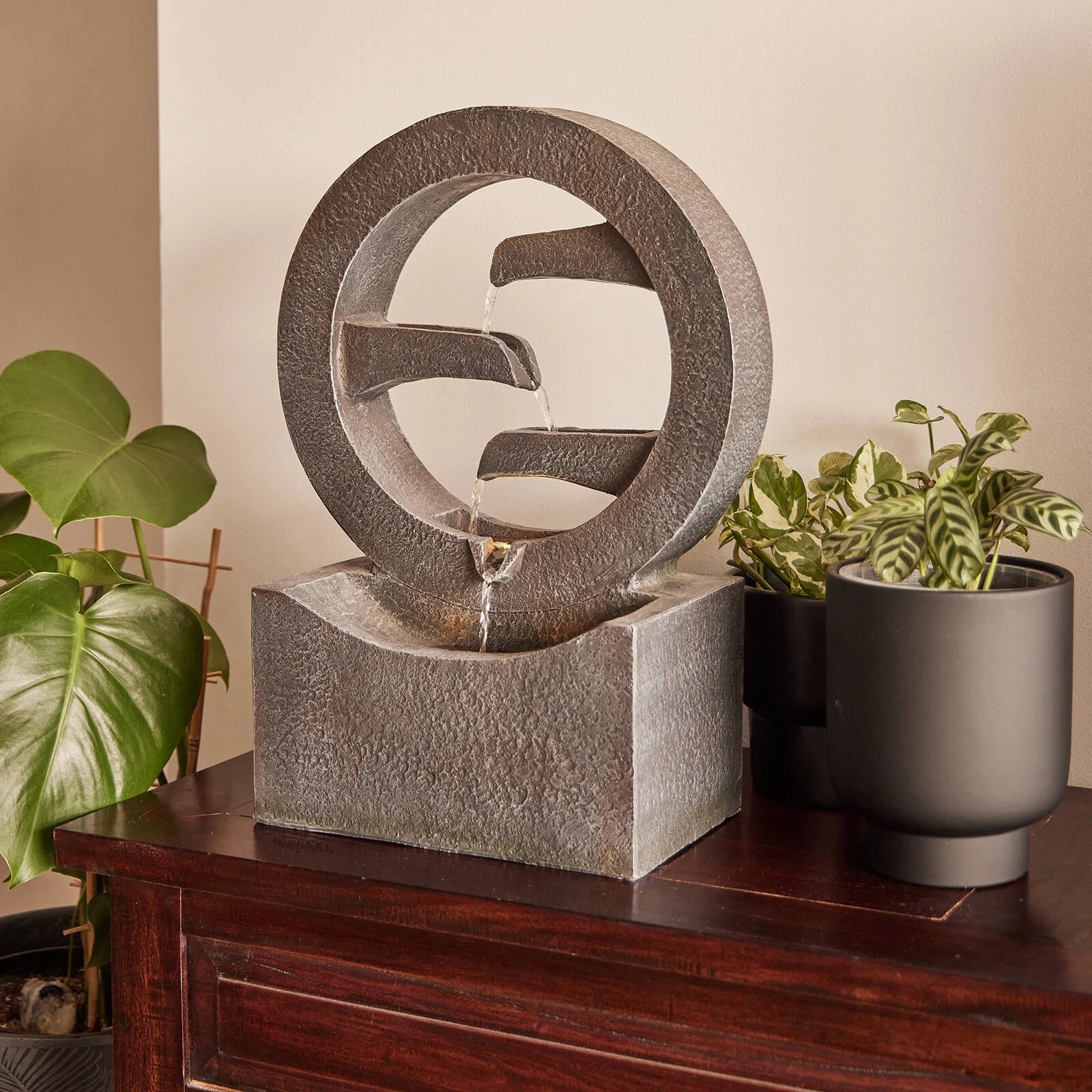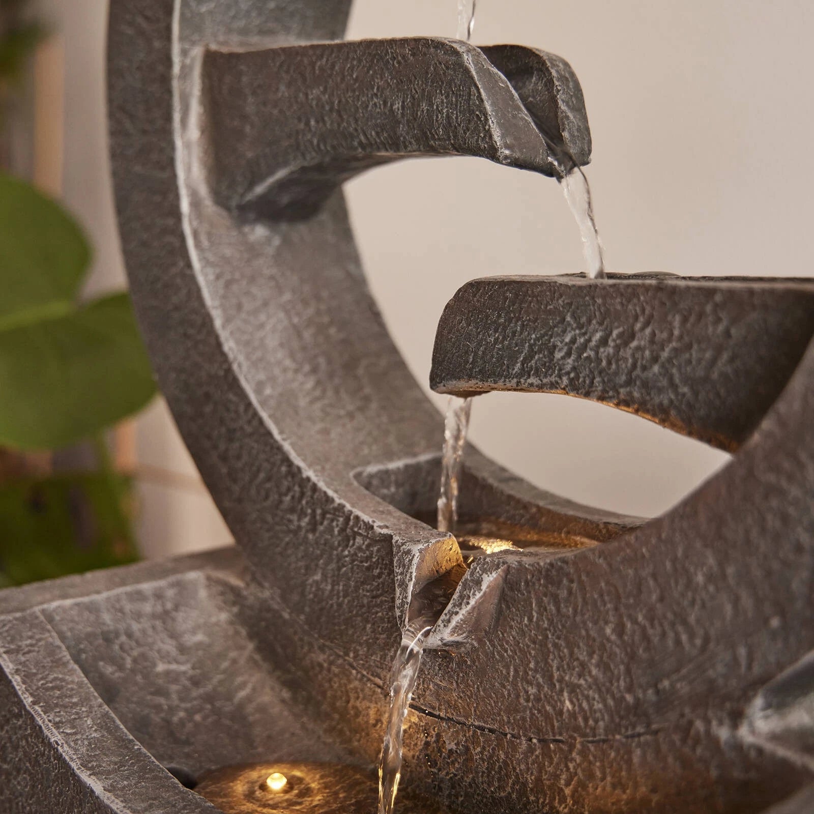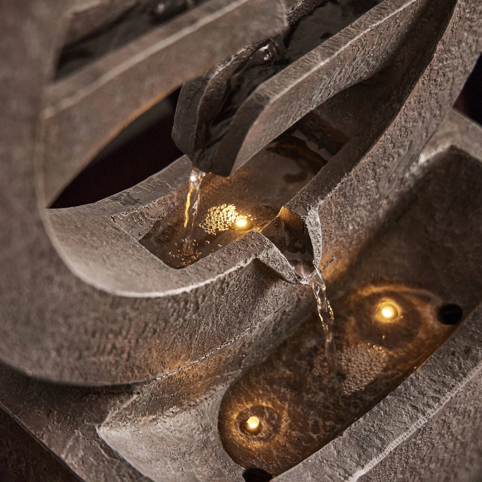 Indulge in sensory bliss with Symphonic Circles. Four water points gently trickle, creating a peaceful aquatic melody. The soft glow of integrated lighting enhances the calming effect, making it perfect for relaxation or decorative purposes.