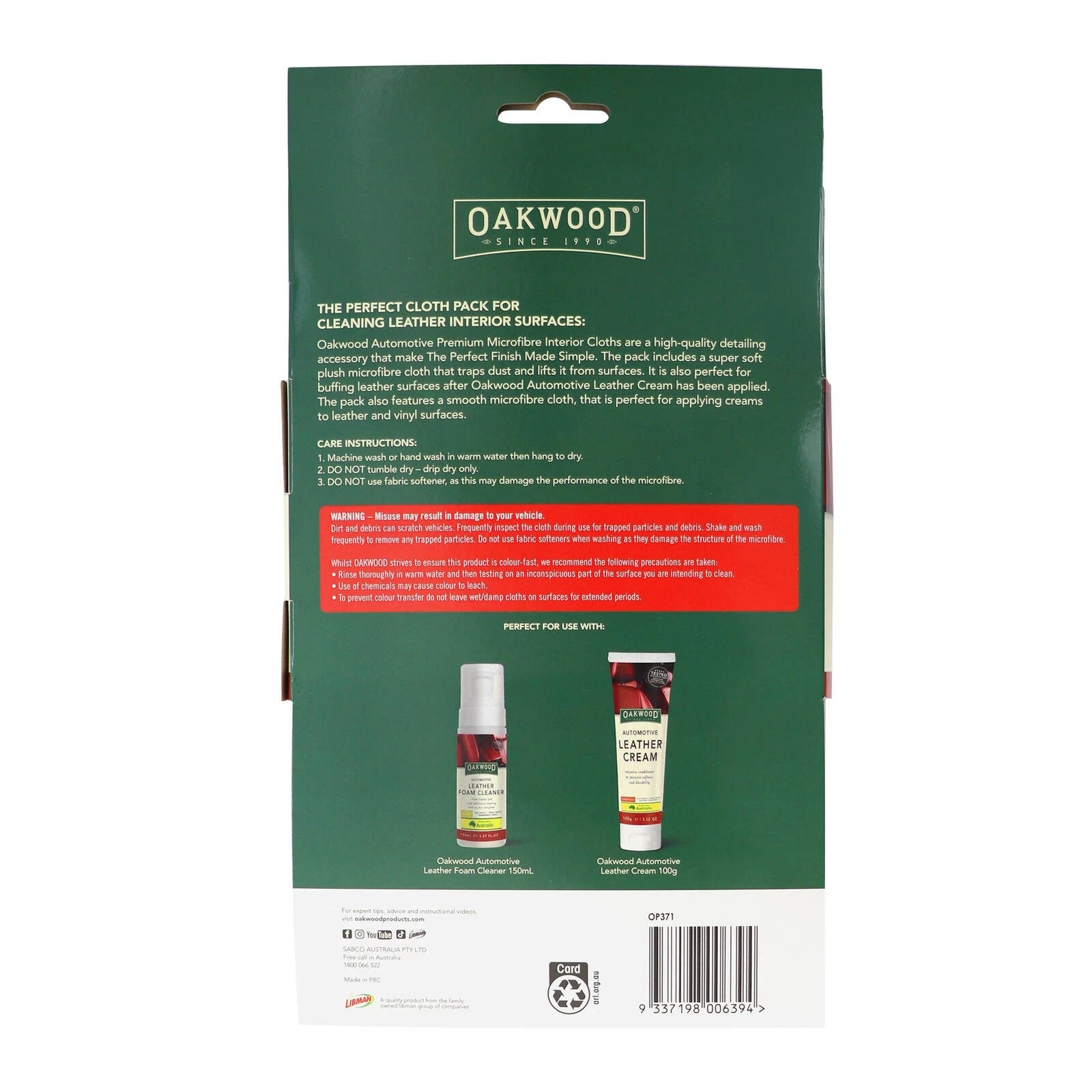 The OAKWOOD Premium Automotive Interior Cloth 2PK features a super soft, plush cloth that effortlessly traps and lifts dust from surfaces, making it ideal for leather, vinyl, and plastic interiors. The smooth microfibre cloth is perfect for applying creams and detailing chemicals, ensuring an even and professional finish.