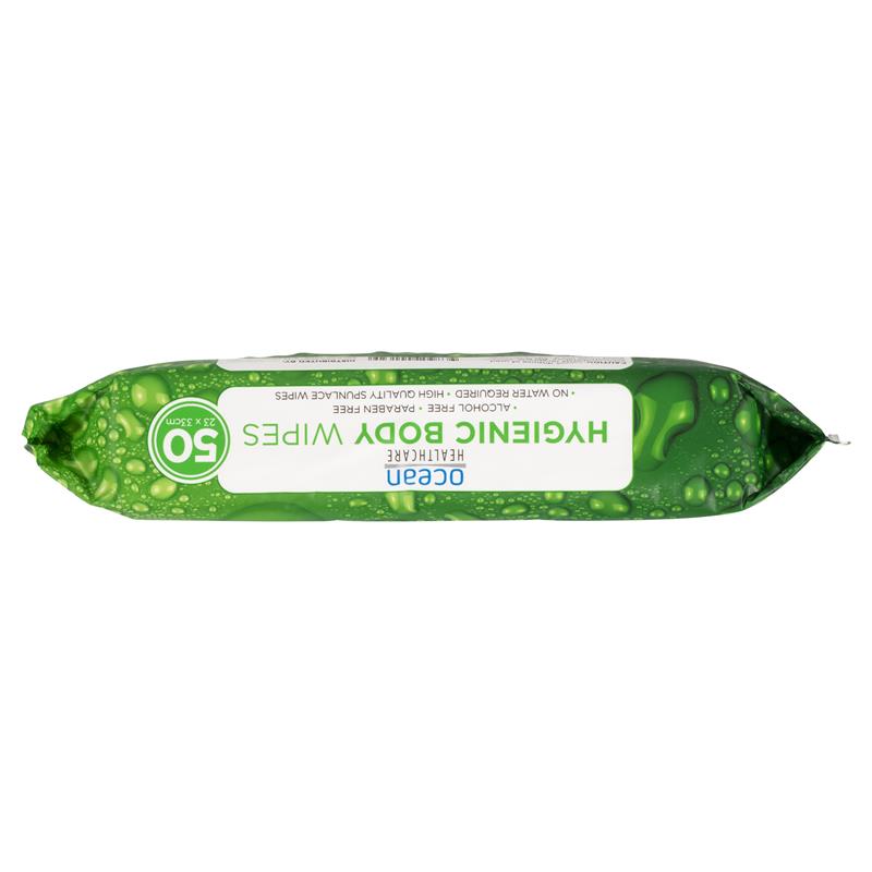 Ocean Healthcare Hygienic Body Wipes quick and easy clean up solution for food residue, incontinence and emesis. A simple solution to washing that requires no use of water, no additional products or towels.