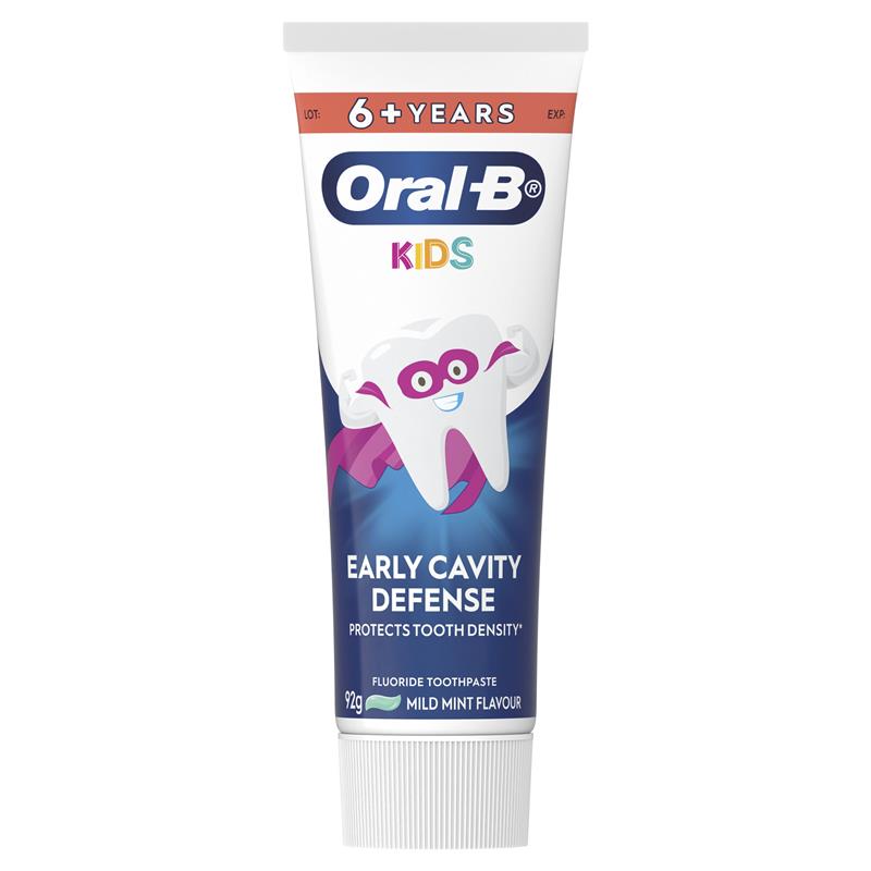 Ensure your child's dental health with Oral-B Kids Toothpaste Early Cavity Defence, specially formulated for children aged 6 years and older. This 92g tube offers effective cavity protection while making brushing fun!