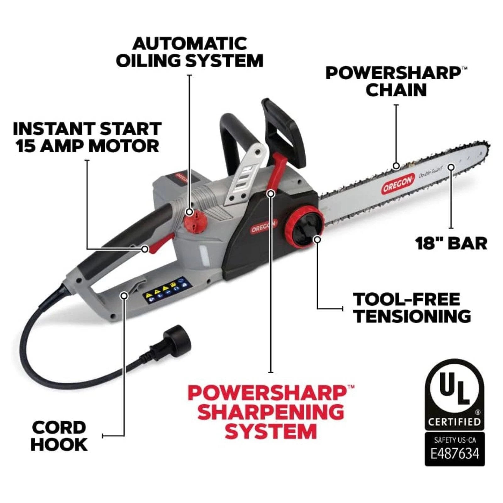 Experience effortless cutting with the Oregon Self Sharpening Chainsaw, designed for efficiency and convenience. This innovative electric chainsaw features a unique self-sharpening mechanism, ensuring your chain stays sharp and ready for any task. Perfect for homeowners and professionals alike, it combines power, ease of use, and low maintenance in one reliable tool.