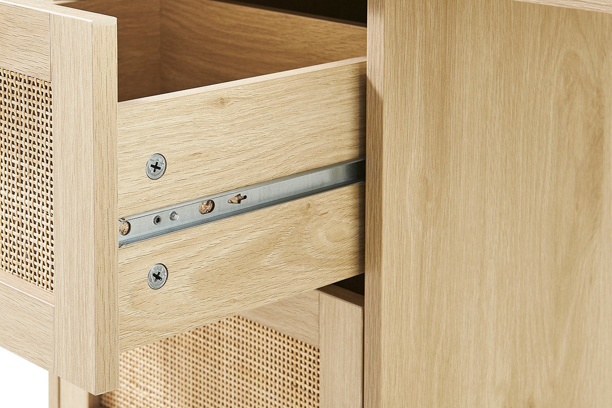 The light wood-look finish and real rattan detailing bring warmth and character to your home. It’s a stylish and functional addition that complements both modern and coastal-inspired interiors.