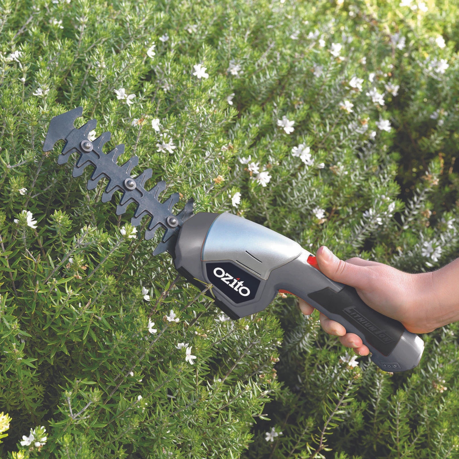 Designed for home use, this cordless hedge trimmer and shear offers a convenient solution for small trimming jobs. Its lightweight design and quick blade change system make garden maintenance simple and efficient. Keep your outdoor space neat and tidy with this versatile tool from Ozito.