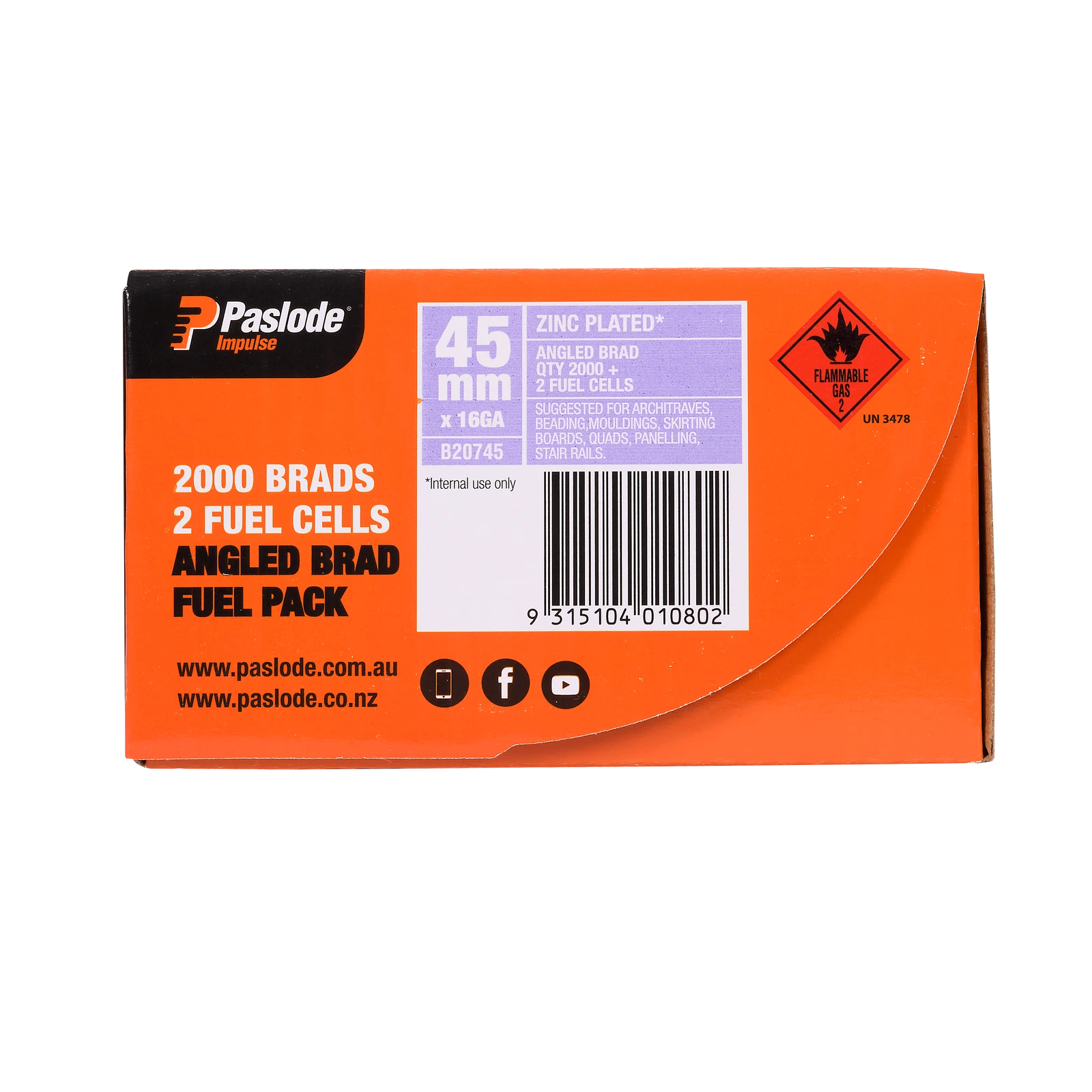 1 x Paslode 45 x 1.6mm 20° Impulse Angle Brad Nails with Fuel – 2000 Pack