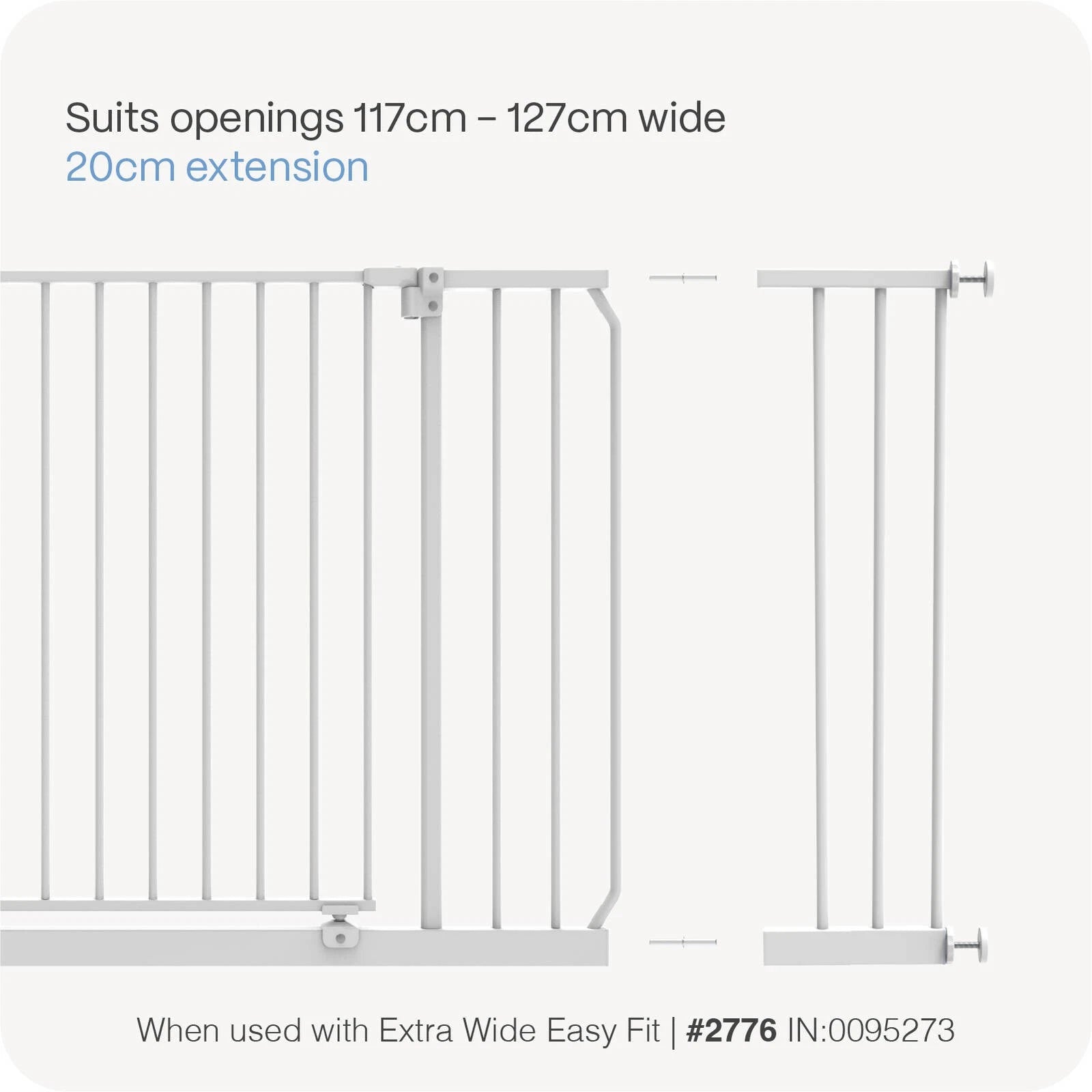 This extension is designed to seamlessly integrate with your existing pressure-mounted baby gate, providing an extra 20cm of width for enhanced safety and flexibility. Its durable steel construction ensures long-lasting performance, making it an essential addition for families seeking a reliable safety solution for children and pets alike.