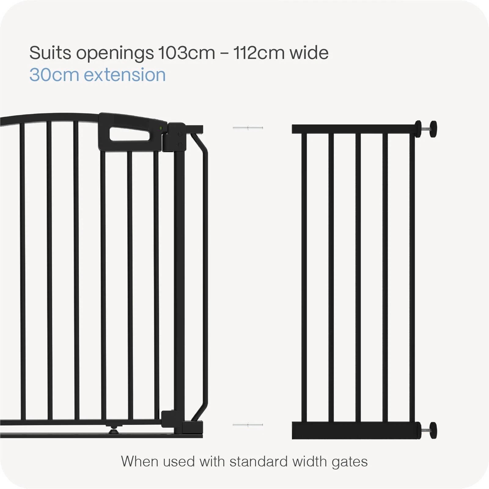 Enhance the safety and versatility of your existing baby gate with the Perma Child Safety 30cm Black Baby Gate Extension. Designed for easy installation and reliable performance, this extension provides an extra 30cm of width to accommodate your growing needs, making it ideal for doorways, hallways, and stairs.