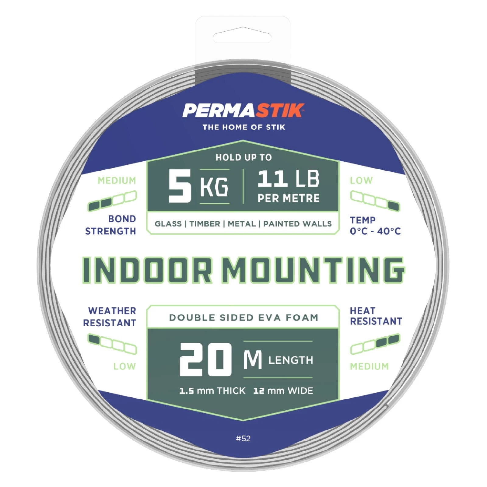 Includes 1 x Permastik 12mm x 20m Indoor Mounting Tape.