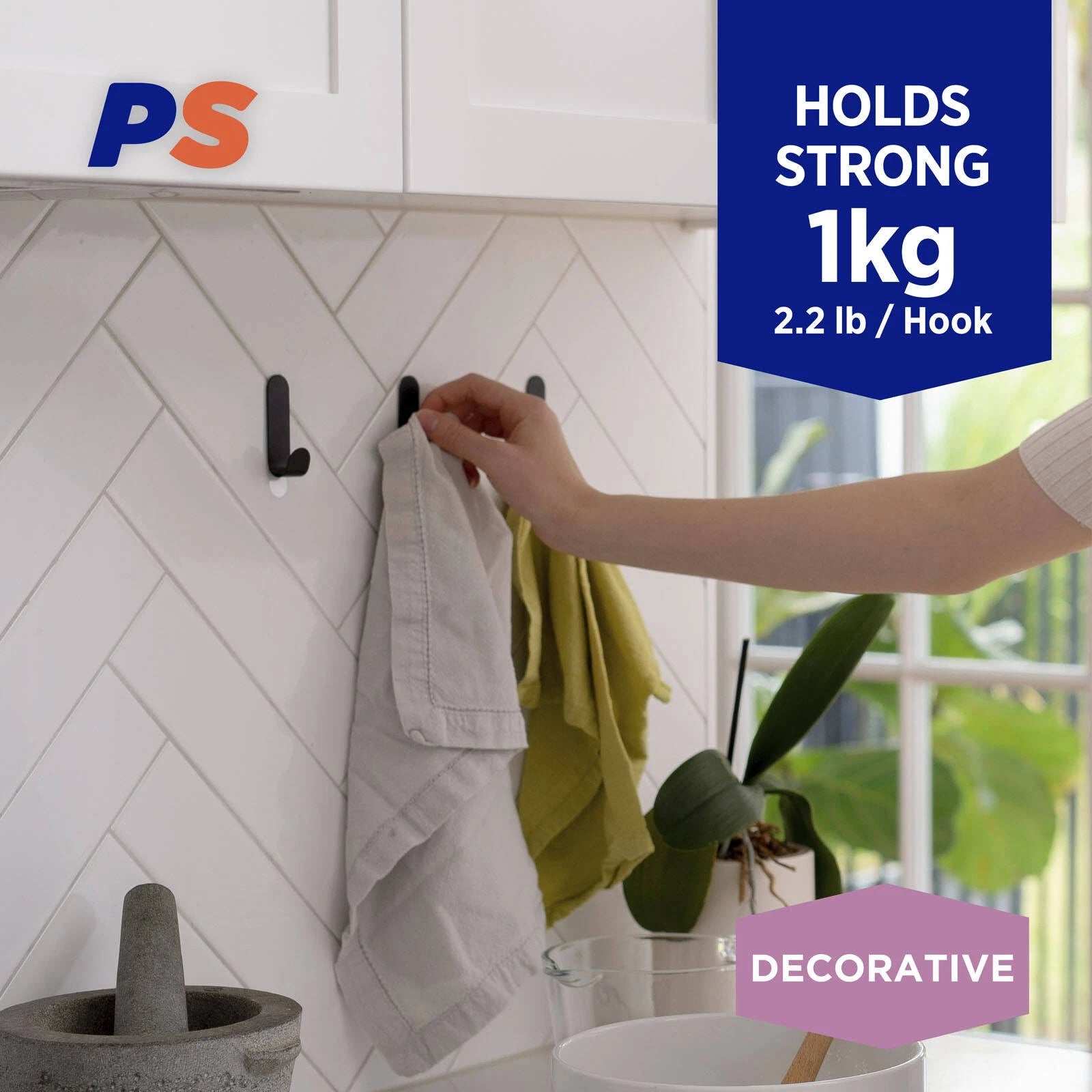 Organize your space effortlessly with the Permastik Medium Black Metal Hooks. Designed for convenience and style, these hooks offer a reliable solution for hanging bags, coats, hats, and belts without the need for drilling or damaging surfaces. Crafted from high-quality materials, they combine functionality with a sleek, modern look.