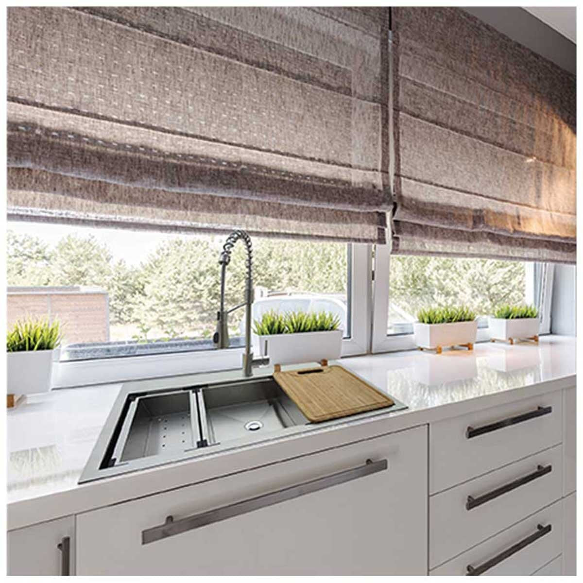 Upgrade your kitchen with the Presenza Deluxe Stainless Steel Kitchen Sink Kit QKA051. This multi-functional sink features an extra-deep 22.8 cm bowl, making it perfect for all your cooking and cleaning needs. The kit includes a full-size protective steel grid for the sink bottom, a double-sided bamboo cutting board that slides effortlessly, and a faucet with Watermark approval.