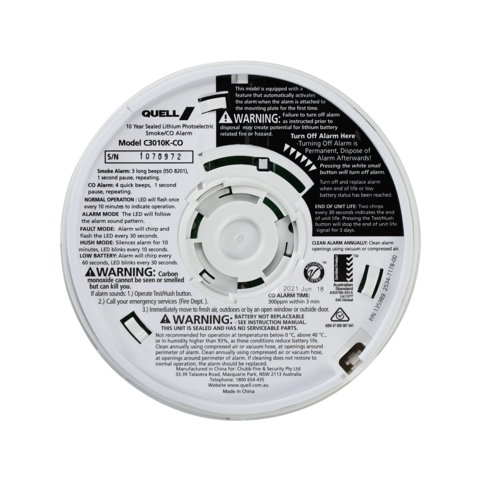 Ensure your home’s safety with the Quell Worry-Free Photoelectric and Carbon Monoxide Alarm. Designed for reliable, continuous protection, this alarm offers peace of mind with its long-lasting, maintenance-free operation and advanced detection features.