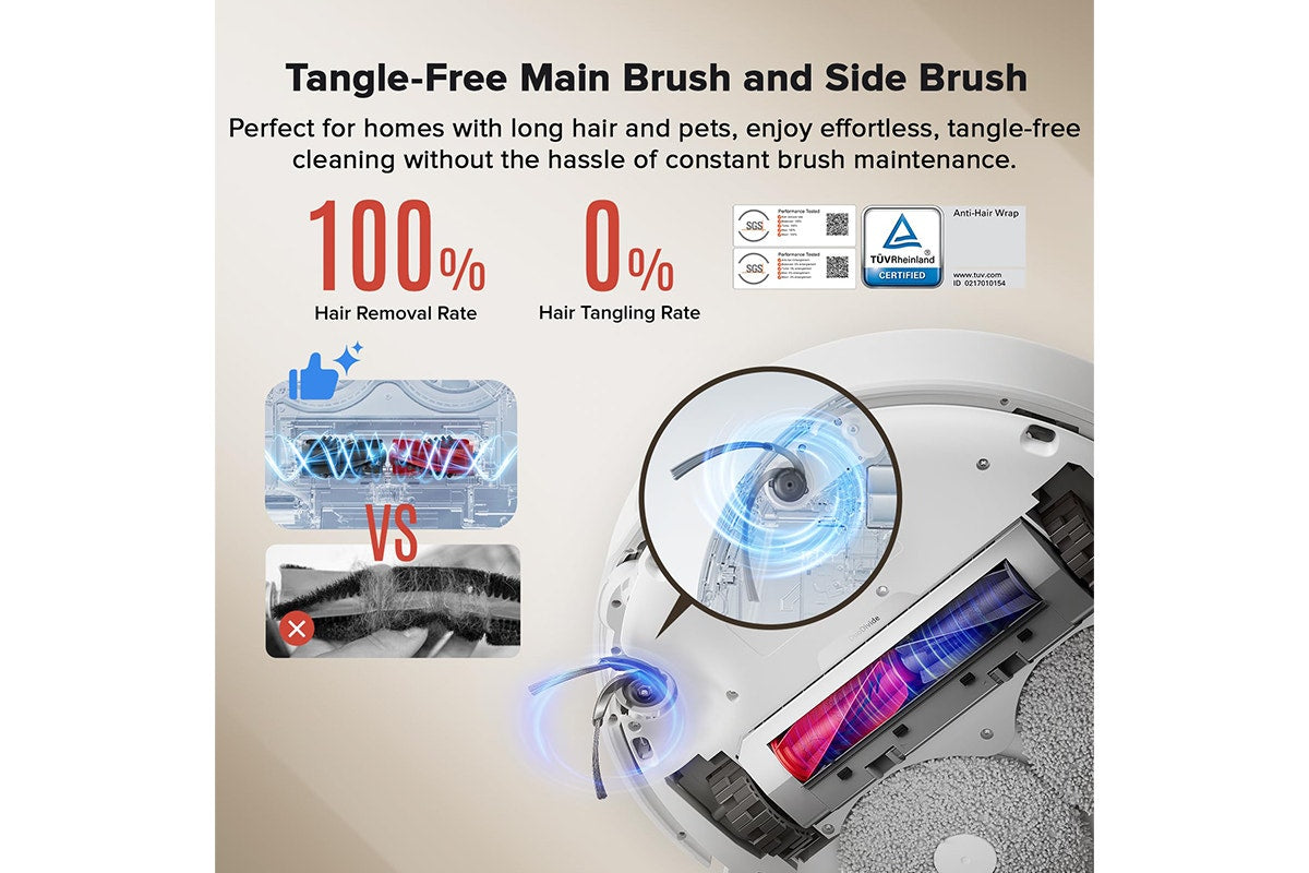Equipped with dual parallel short bristle rollers and spiral blades, the DuoDivide™ Brush directs hair and debris straight to the central dustbin inlet for rapid removal. Certified by SGS and TUV, it delivers exceptional cleaning power with advanced anti-tangle technology, redefining effortless cleaning performance.