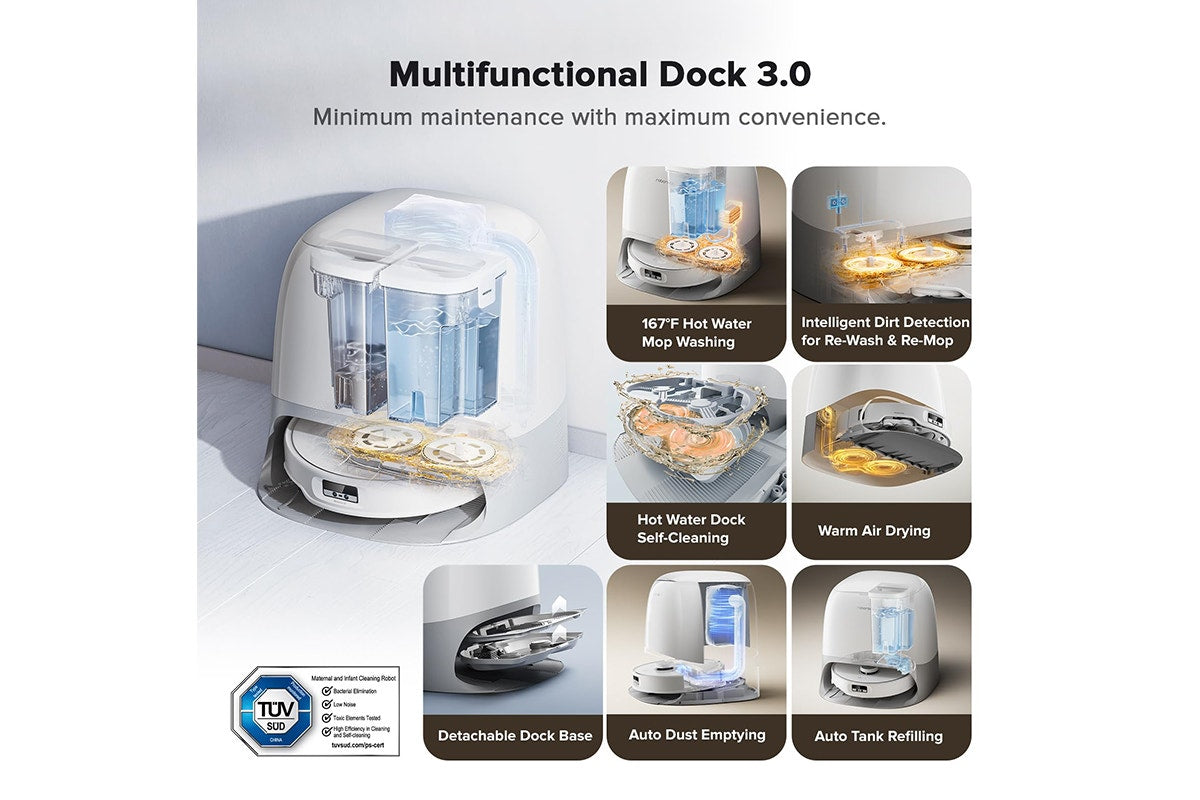 Dries mops and dock base completely using 113°F (45°C) warm air, preventing Mold and odor formation. Keeps your robot fresh and hygienic between uses for consistent cleaning performance.