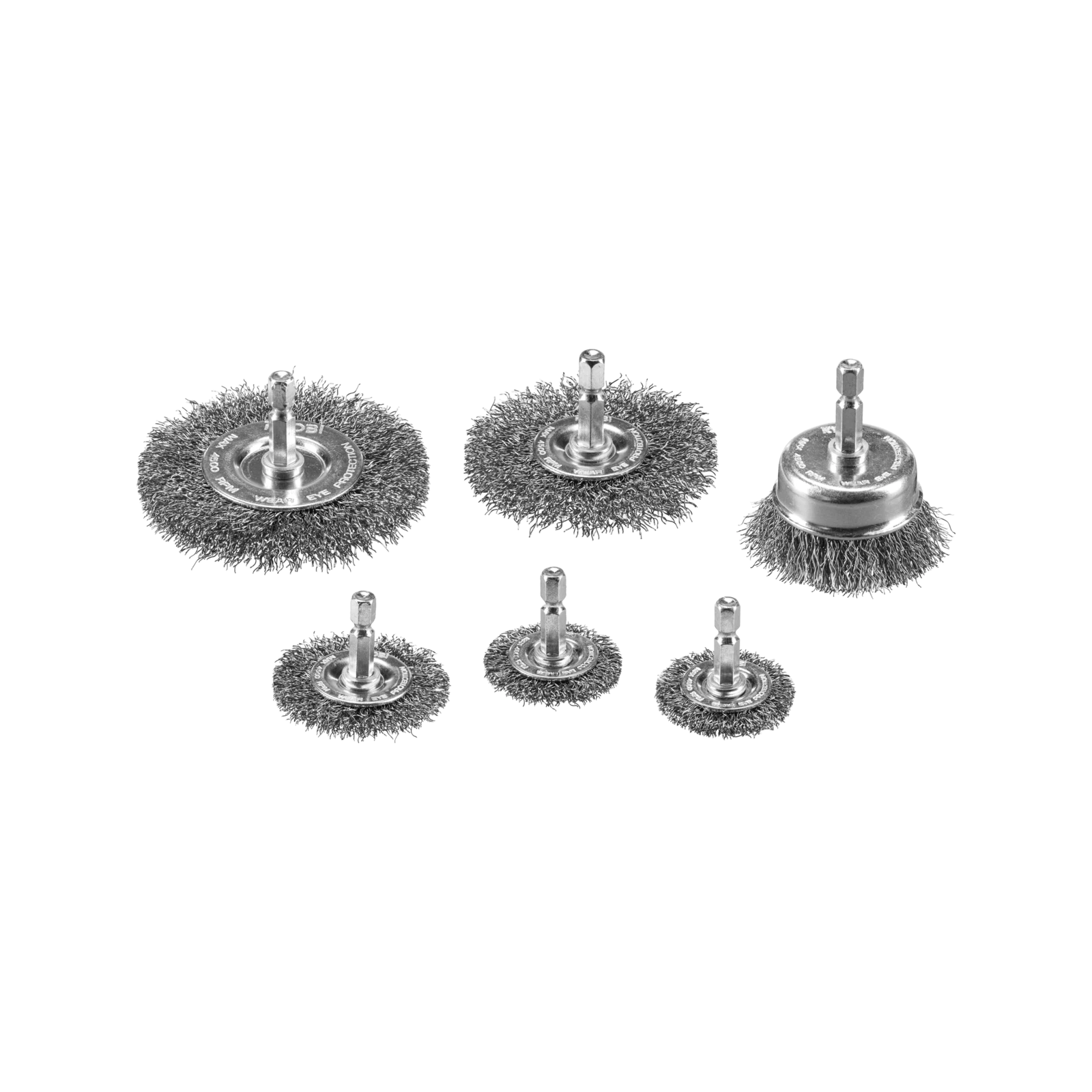 Use these wire wheel brushes for DIY projects, furniture restoration, and detailed cleaning. The 50mm cup brush is perfect for cleaning large surfaces, while the five wheel brushes excel at reaching tight corners and intricate details.