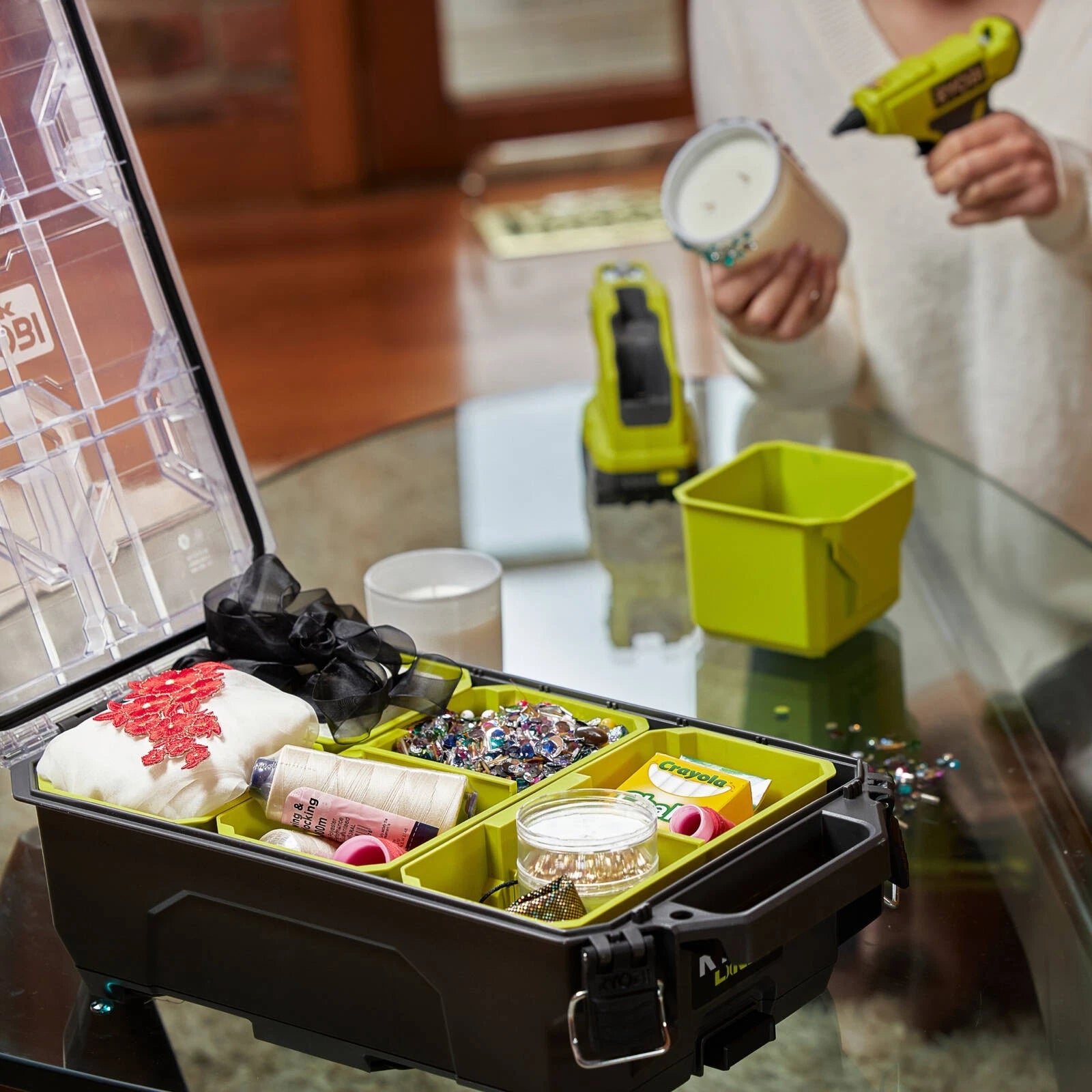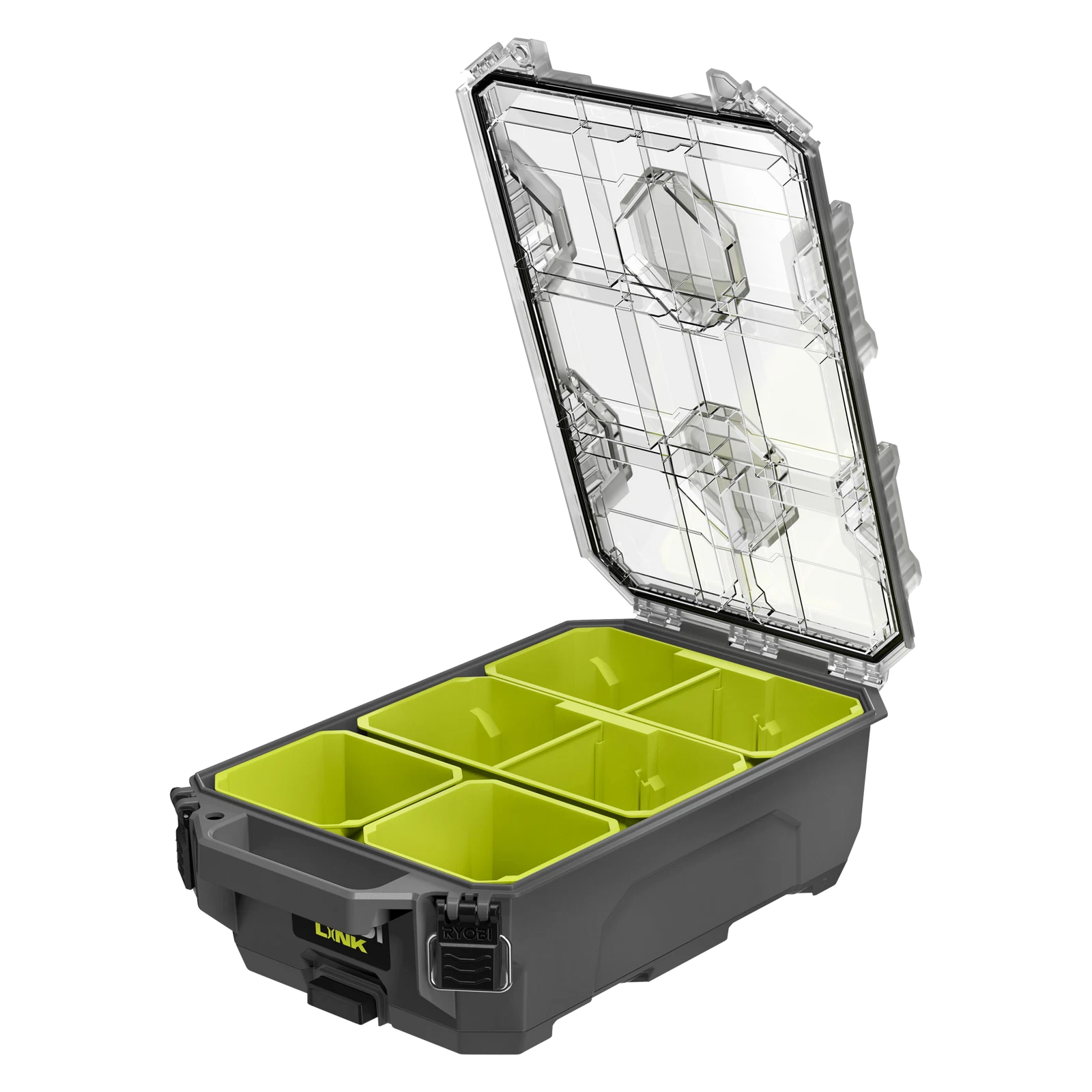 Organise, store, and transport your fasteners, tool accessories, and hobby items with the versatile Ryobi LINK™ Small Compact Parts Organiser. Designed for durability and modular flexibility, this organiser seamlessly integrates with the RYOBI LINK™ System to enhance your storage solutions for tools, crafts, camping gear, and more.
