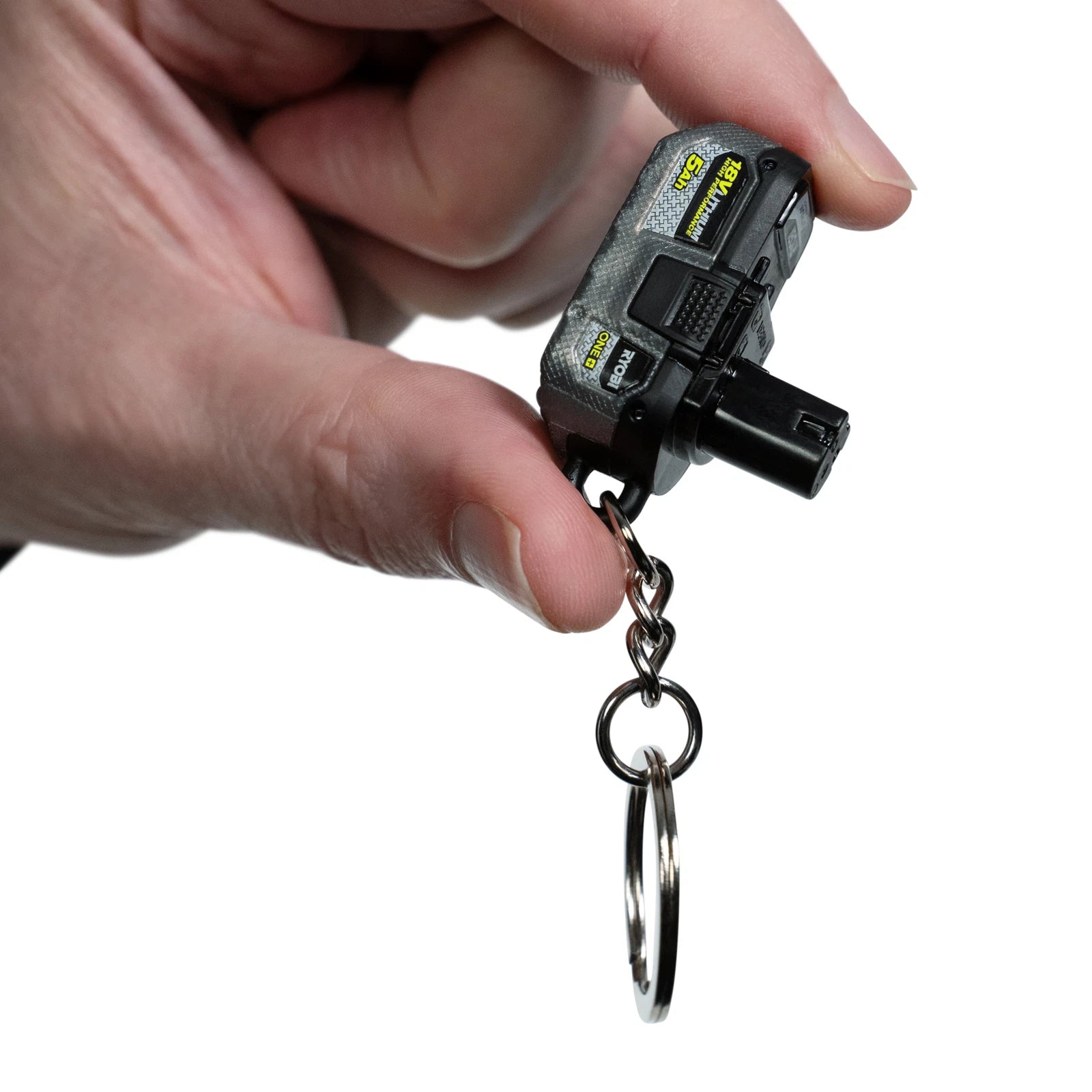Enhance your collection with the Ryobi MINI’s Battery Keyring. A unique, eco-friendly accessory that combines craftsmanship with passion for RYOBI tools.