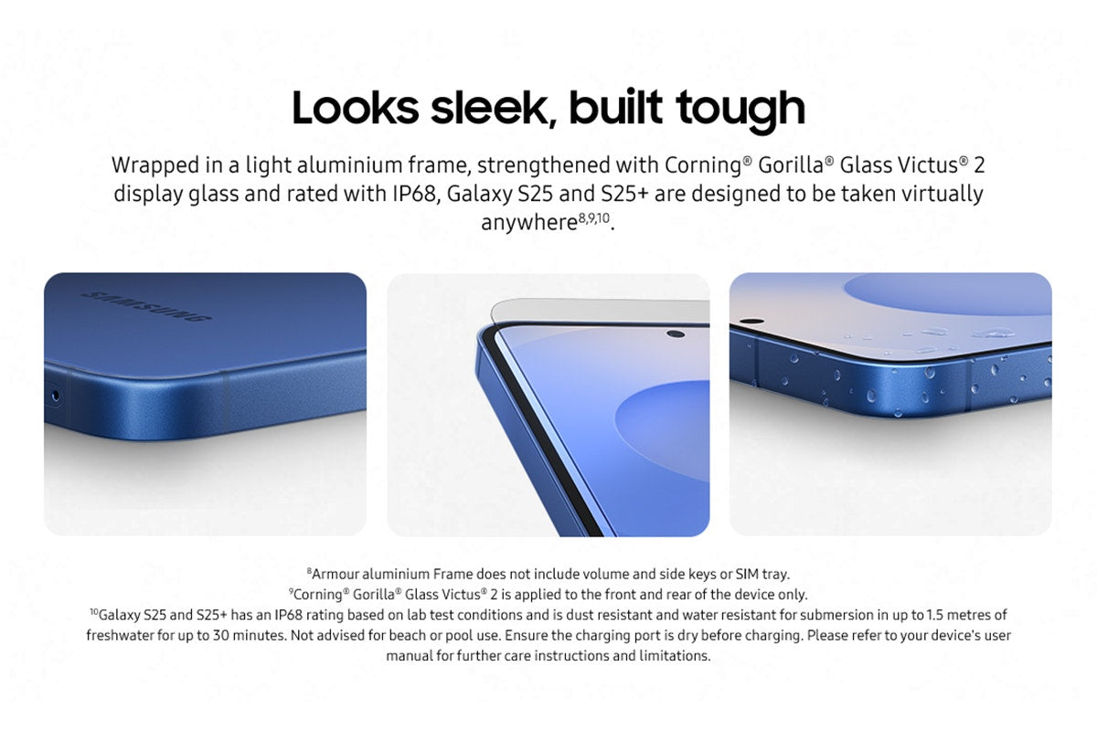 With an IP68 rating, the Galaxy S25+ is designed to be both dust and water-resistant, providing durability for all your adventures.