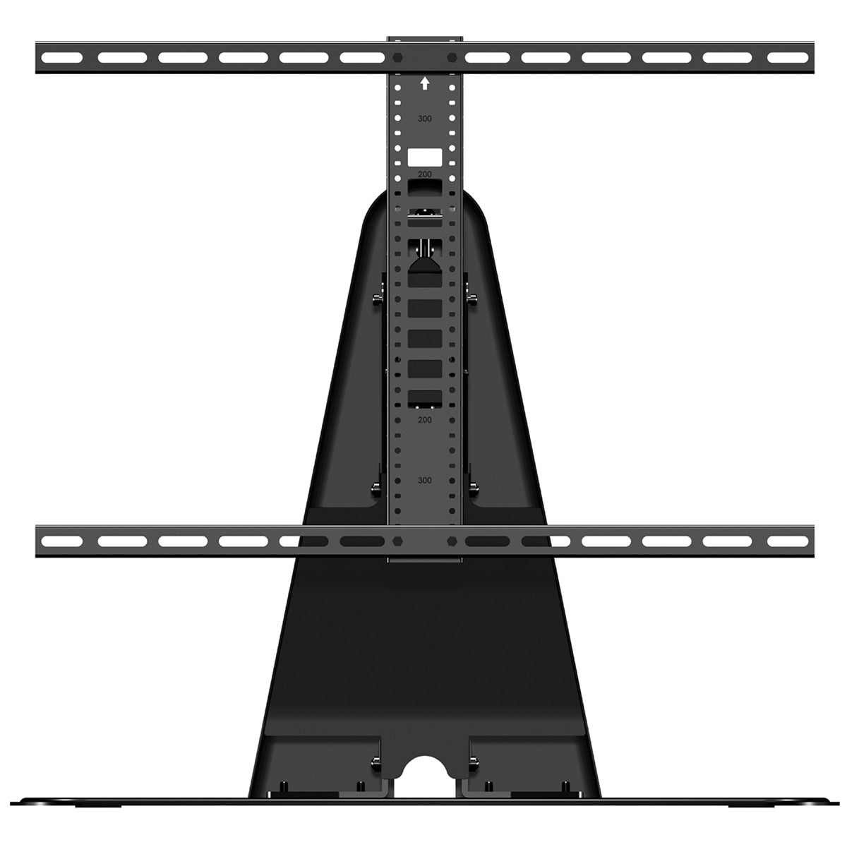 Achieve the sleek look of a wall-mounted TV with the SANUS Swiveling TV Base. This stylish tabletop stand offers a clean, modern aesthetic while providing up to 8 inches of height adjustability. Create valuable space underneath your TV for a soundbar or other components.