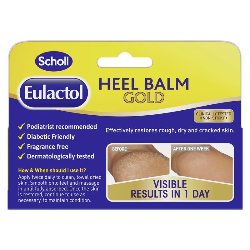 Scholl Eulactol Heel Balm Gold effectively restores rough, dry, and cracked skin.