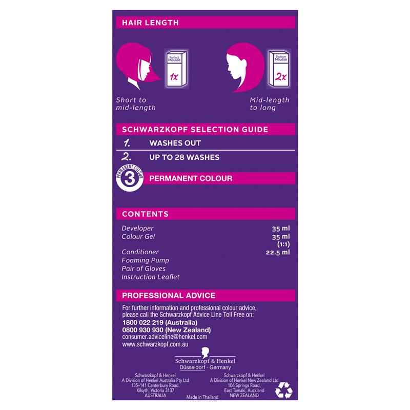 Schwarzkopf Perfect Mousse 5-0 in Medium Brown delivers shiny, long-lasting color with +30% conditioning for healthy-looking hair. Enjoy perfect grey coverage without ammonia.