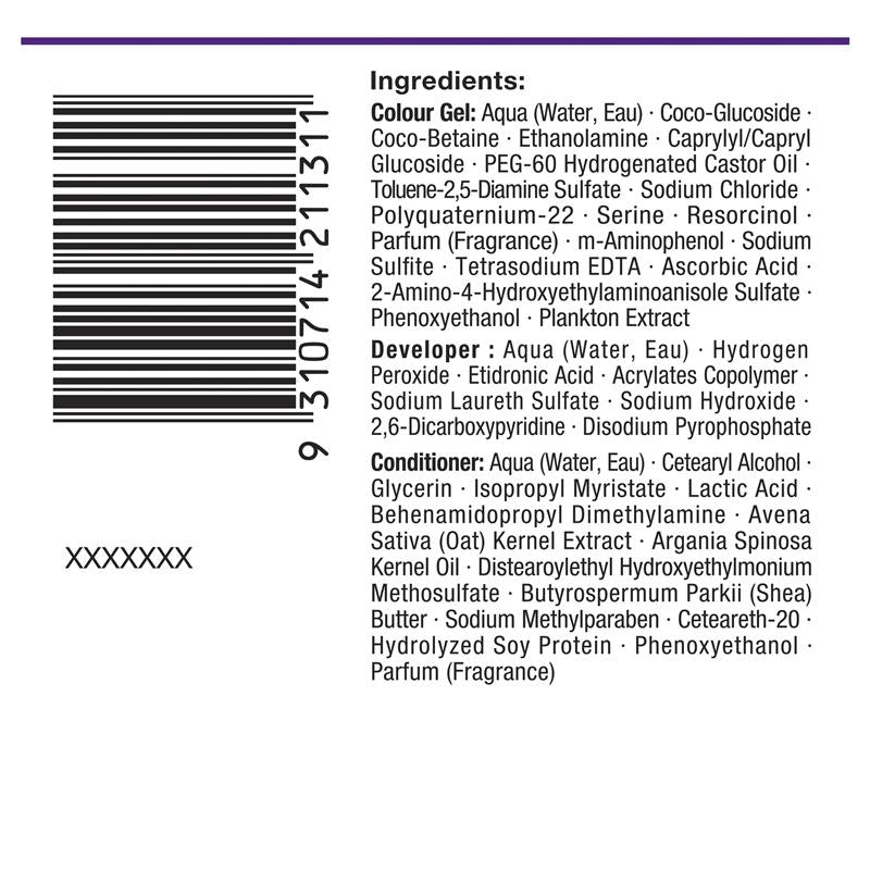 Developer 35mL, color gel 35mL (1:1), conditioner 22.5mL, foaming pump, gloves, instruction leaflet.