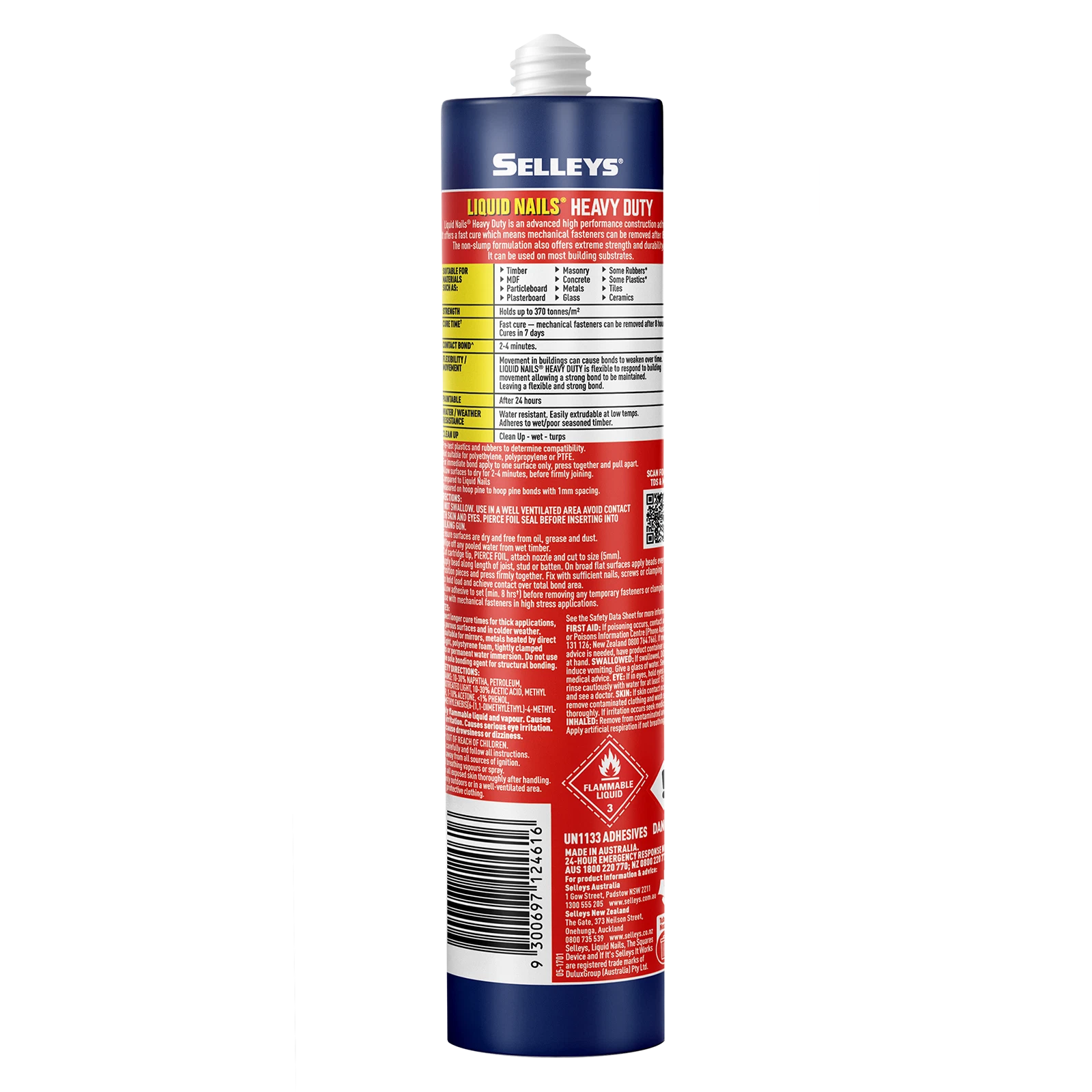 Includes 1 x 350g Heavy Duty Liquid Nails cartridge, ready for your toughest bonding tasks.