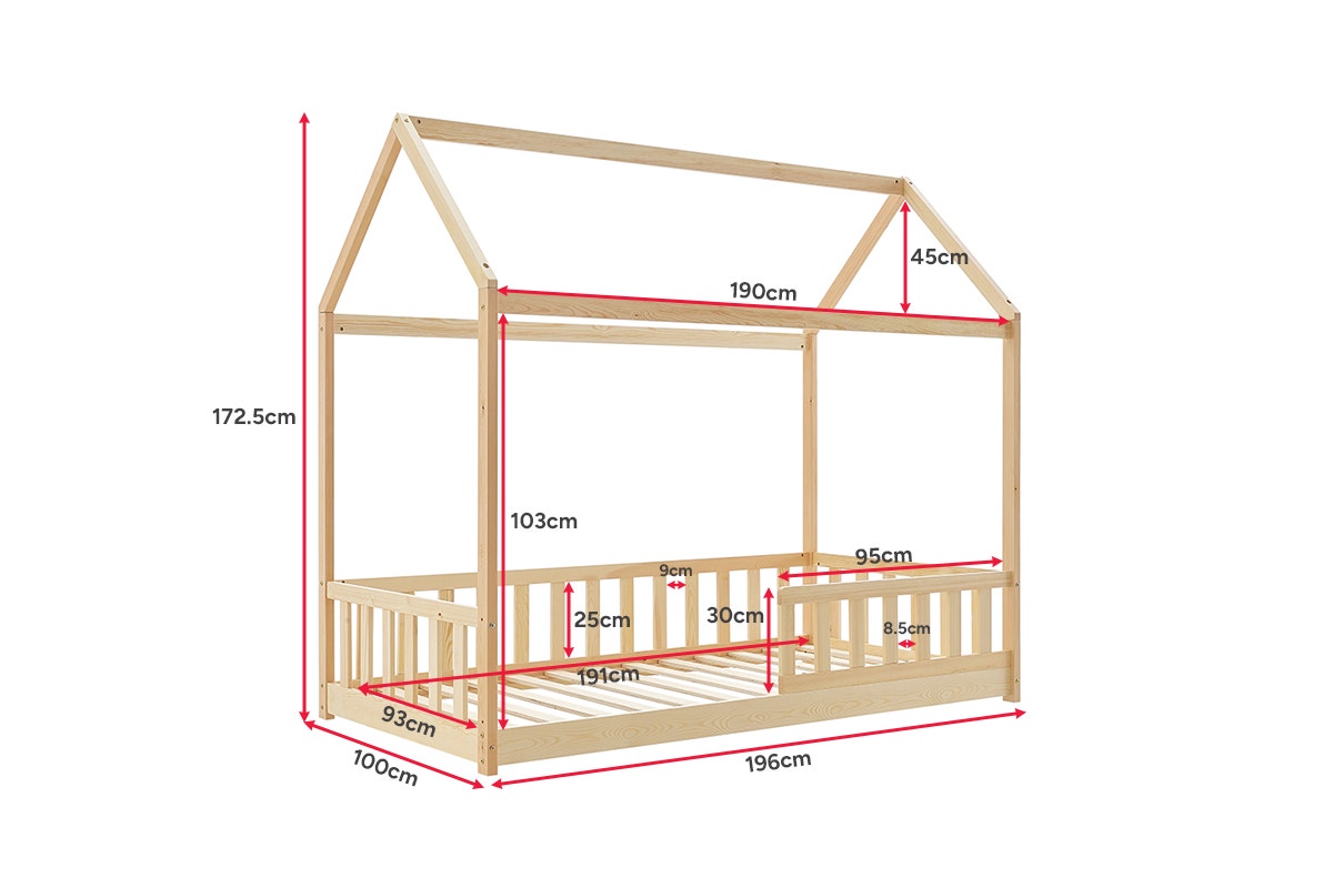 Crafted from solid pine wood, this frame offers impressive strength and longevity with the added beauty of visible natural grain. It’s a sturdy foundation for rest and play, designed to hold up through years of use and plenty of bedtime stories.