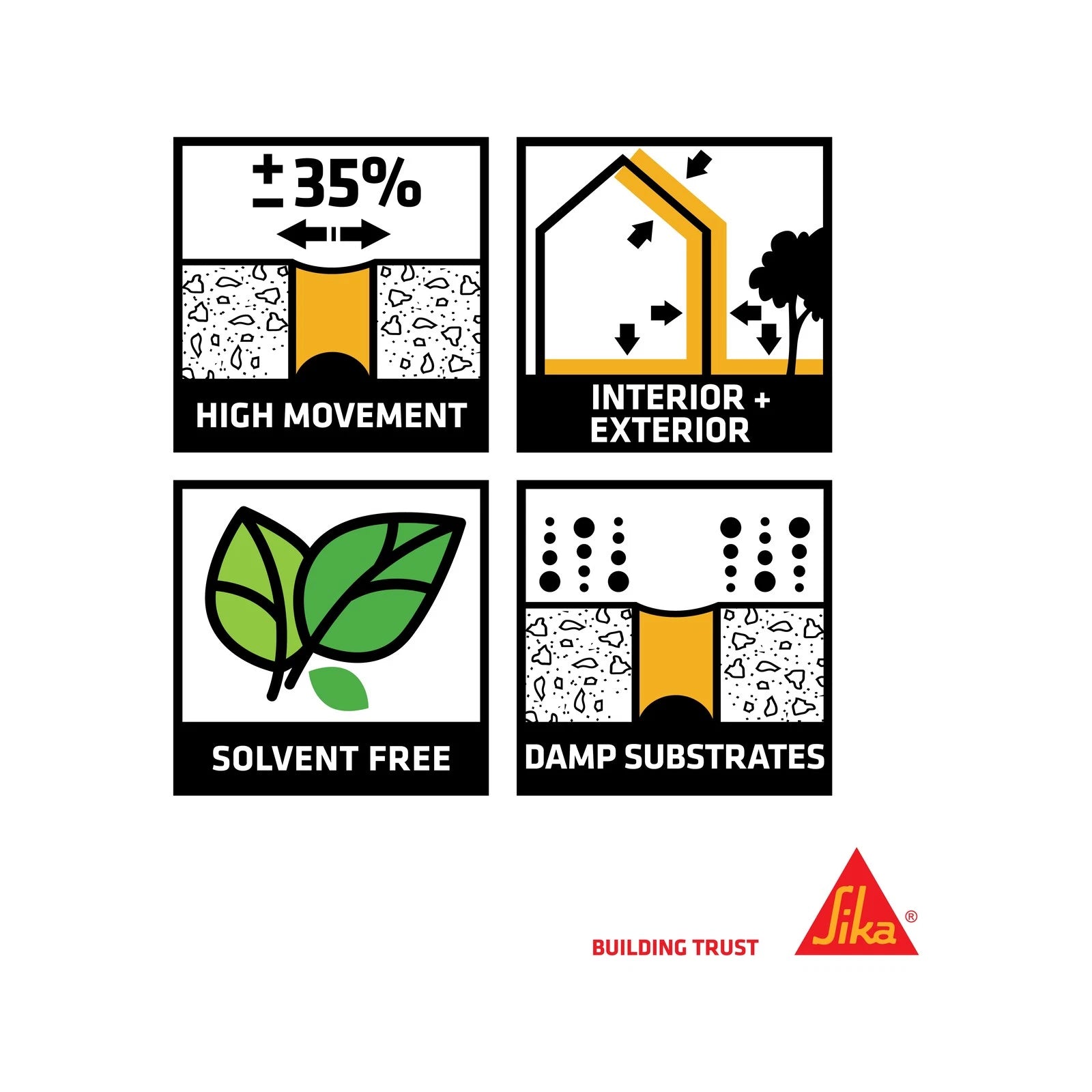 It adheres well to various substrates such as aluminium, steel, powder-coated metals, glazed tiles, concrete, aerated concrete, cement-based renders, mortars, and bricks. Sikaflex Pro+ performs effectively even on damp surfaces, ensuring reliable sealing in diverse conditions.