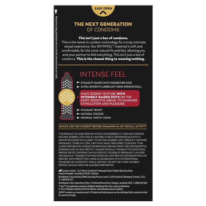 This isn't just a box of condoms. This is the latest in condom technology for a truly intimate sexual experience. Our SKYNFEEL® material is soft and comfortable, for the most natural fit and feel, allowing you and your partner to feel everything. This isn't just a box of condoms. This is the closest thing to wearing nothing.