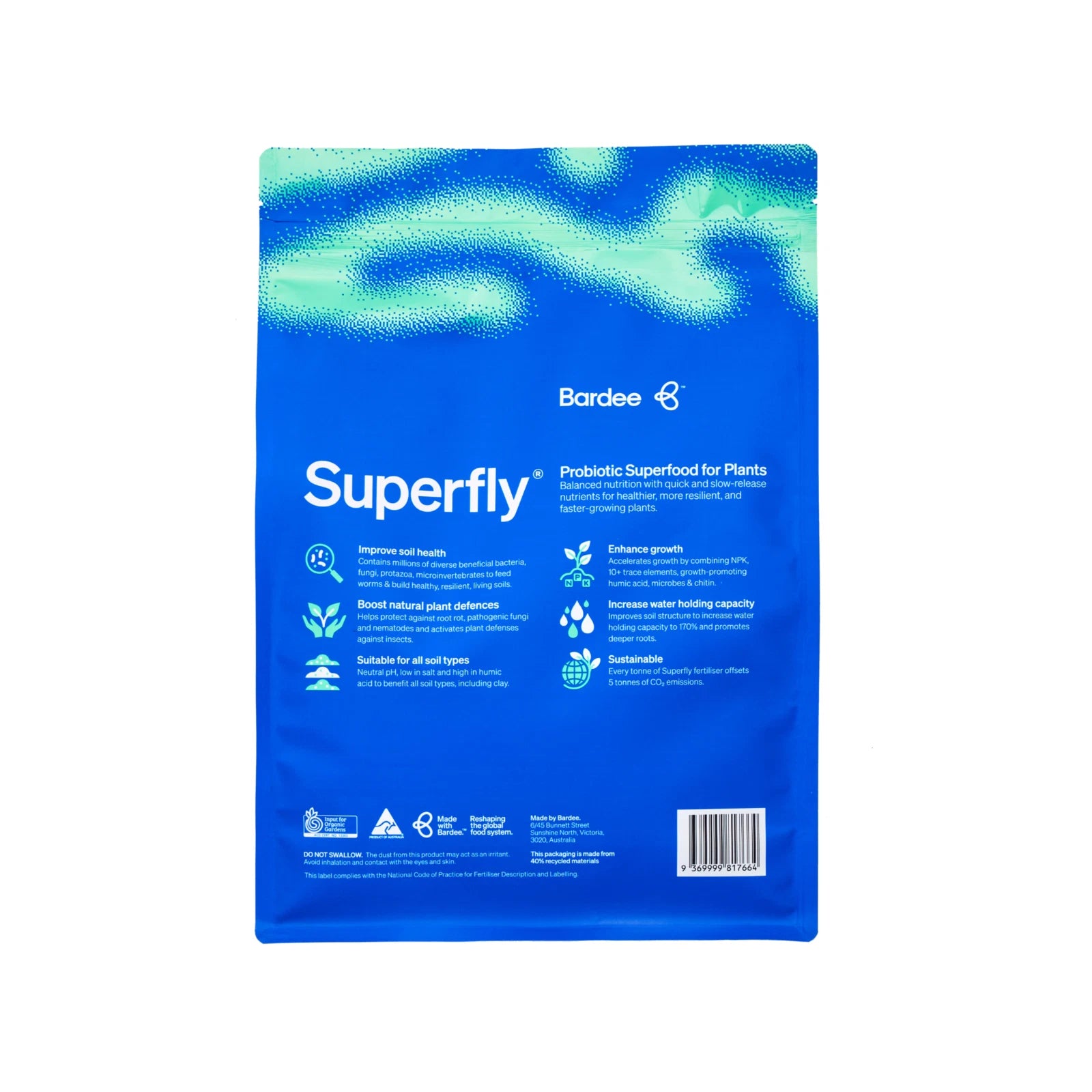Boost your garden’s health with Superfly, an innovative all-purpose fertiliser and soil enhancer designed to promote faster, healthier, and more resilient plants. Made from 100% black soldier fly castings and exoskeletons, Superfly transforms food waste into a powerful nutrient source, helping you grow greener lawns and vibrant gardens while reducing environmental impact.