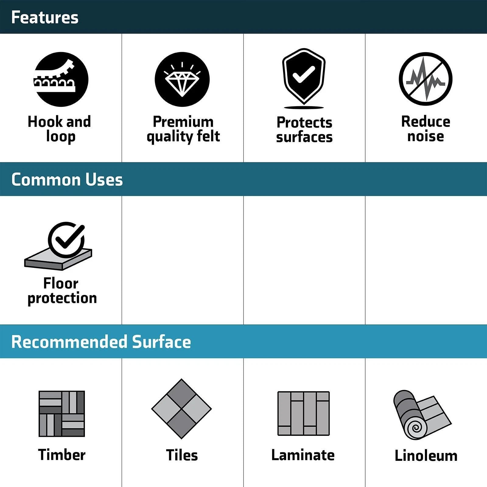 Protect your floors and reduce noise with the Surface Gard 19mm Beige Round Hook and Loop Felt Pads. Designed for durability and ease of use, these felt pads are perfect for safeguarding surfaces while providing a simple solution for mounting and fastening various objects.