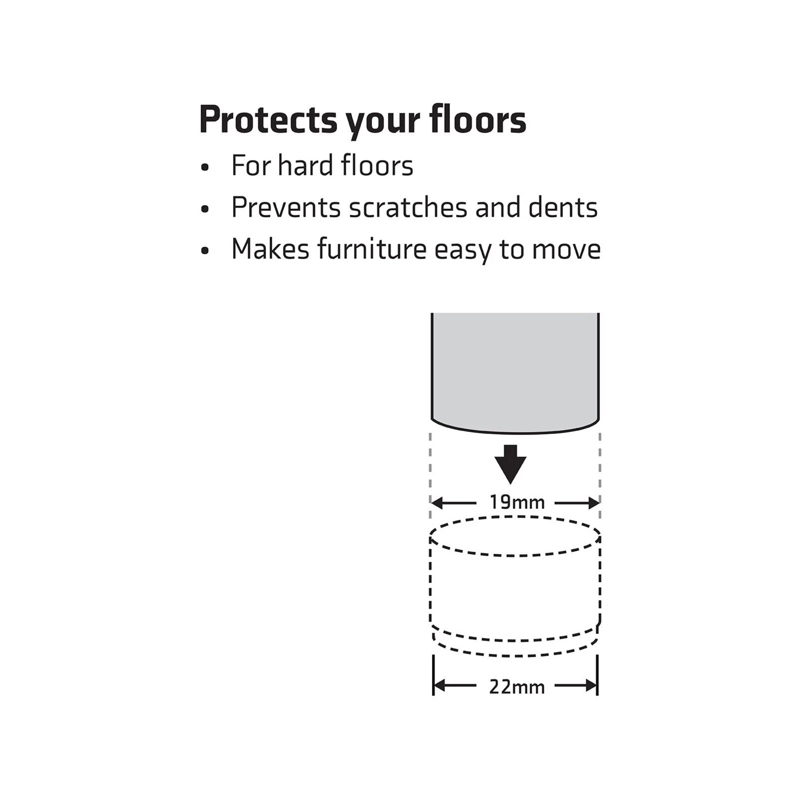 Includes 4 black round external felt-based chair tips, designed to fit 19mm diameter legs.