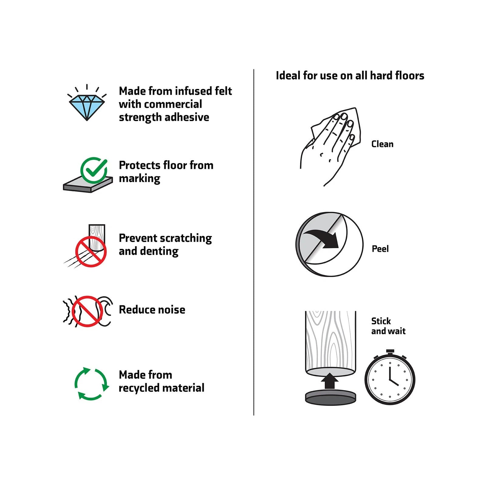 Protect your surfaces and reduce noise with the Surface Gard 48mm Black Round Felt pads. Designed for easy installation and long-lasting durability, these felt pads are ideal for furniture and other household surfaces. Keep your hardwood, ceramic, and linoleum surfaces safe while minimizing vibration and noise.
