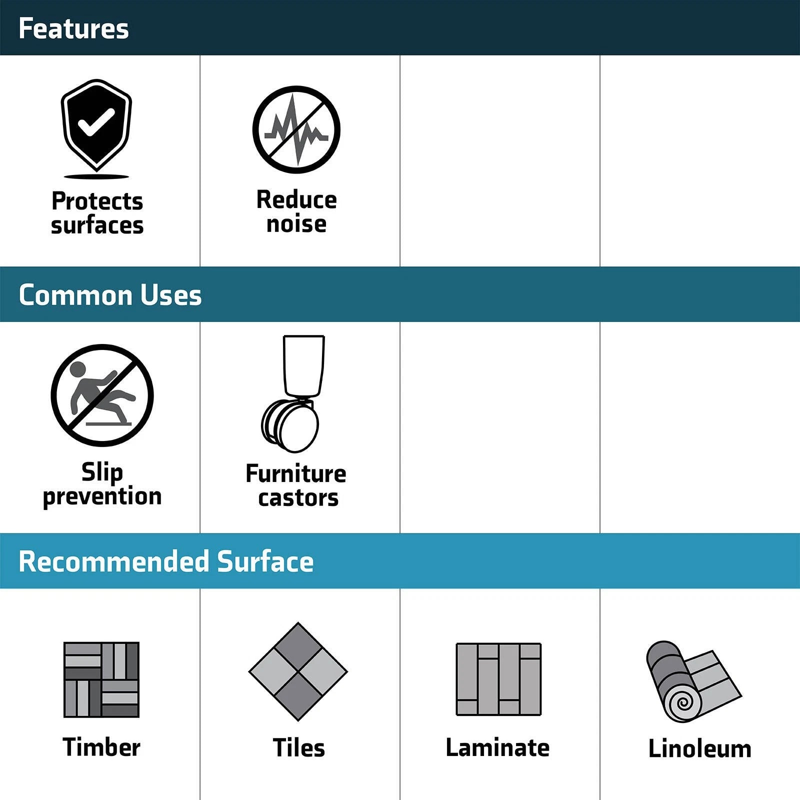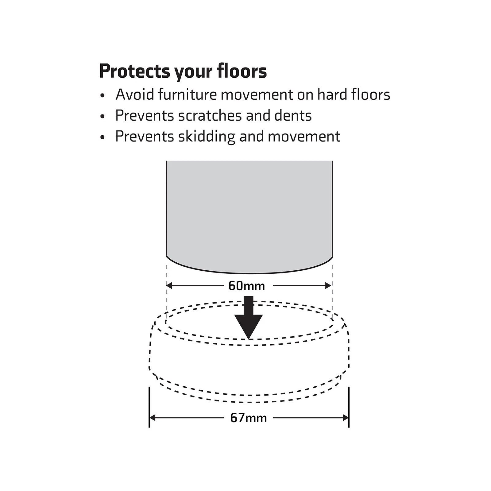 Includes 4 pieces of the Surface Gard 66mm Dark Wood Effect Non-Slip Round Castor Cups.
