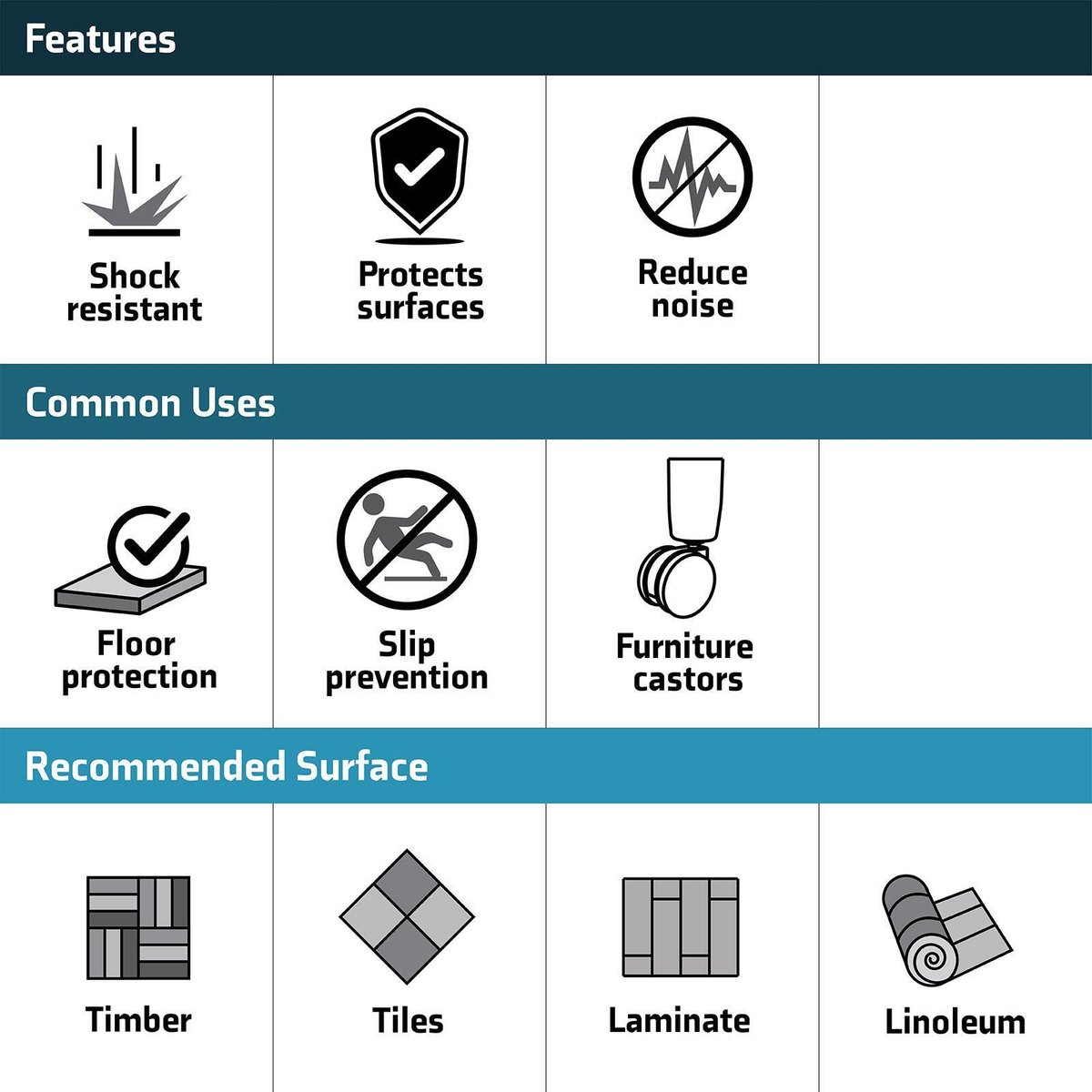 Surface Gard Brown Square Rubber Castor Cup 40mm 4 Pack provides effective floor protection for various surfaces, preventing damage from furniture movement.