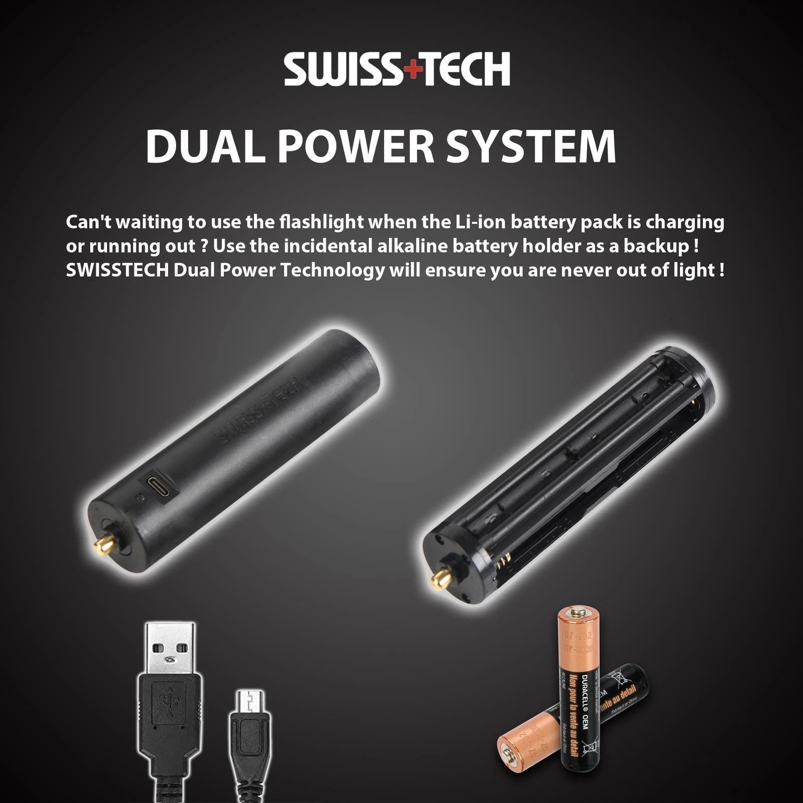 Experience versatile, powerful illumination with the SWISS+TECH 1000lm Dual Power Rechargeable Drop Proof Flashlight. Designed for durability and convenience, this high-performance flashlight offers dual power options, robust construction, and impressive brightness to meet all your outdoor and emergency lighting needs.