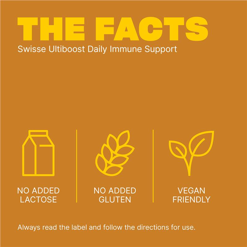 Swisse Ultiboost Daily Immune Support is a premium-quality formula that provides immune health support all year round. Enriched with vitamin C, it assists healthy immune function and reduces the duration and severity of common cold symptoms.