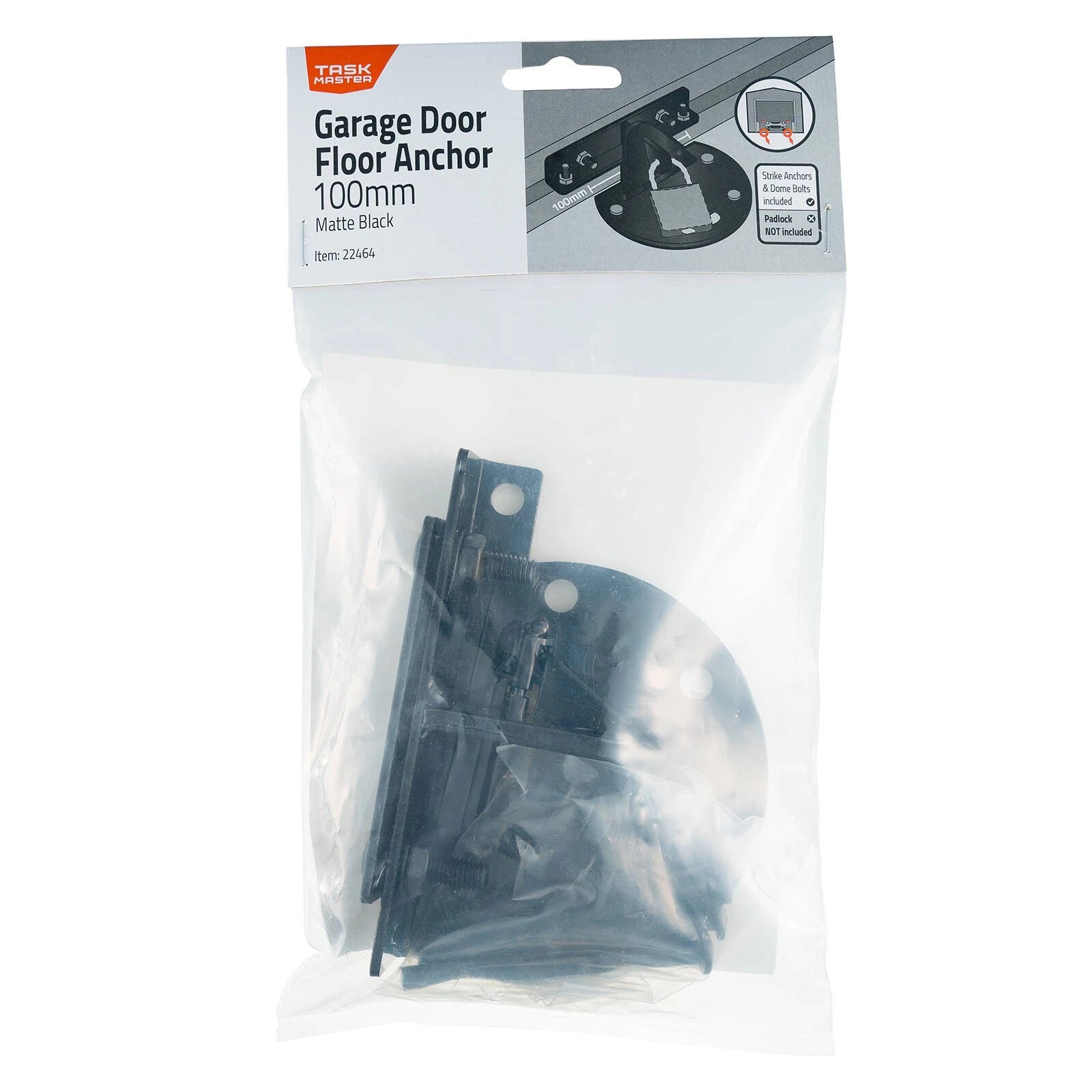 Enhance the security of your garage or shed with the Taskmaster 100mm Black Matte Garage Door Floor Anchor. Designed for easy DIY installation, this robust anchor provides a reliable solution to safeguard your property. Compatible with high-security padlocks (sold separately), it ensures your garage or shed remains protected against unauthorized access.