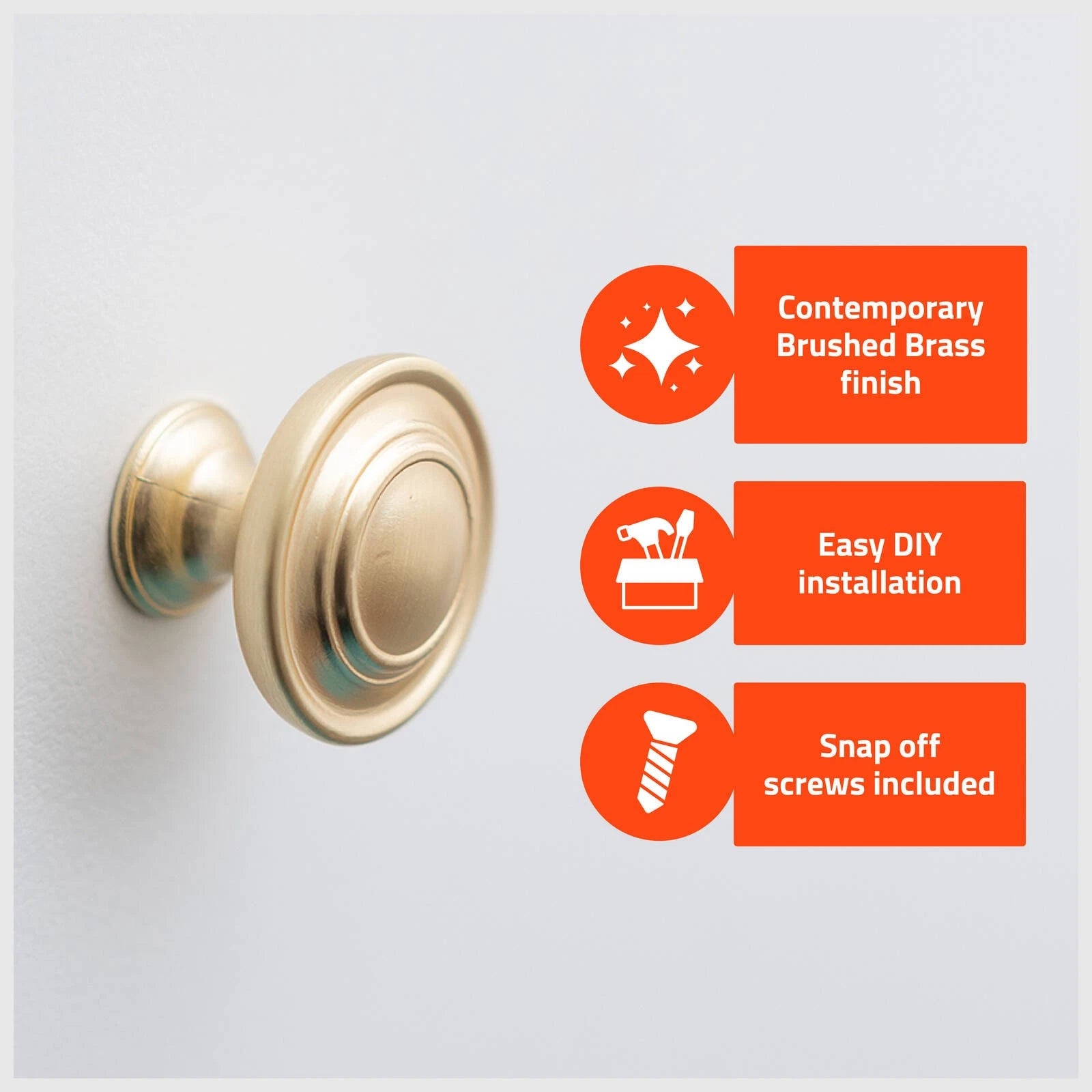 Upgrade your furniture effortlessly with the Taskmaster 34mm Brushed Brass Round Cabinet Knob. Designed for both style and functionality, this antique-inspired knob adds a touch of elegance to any space. Perfect for new installations or retrofitting existing furniture, it’s an ideal choice for kitchens, bathrooms, and more.