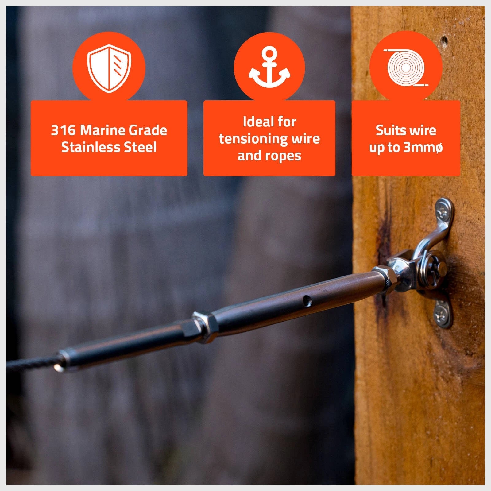 Choose the Taskmaster 3mm Stainless Steel Bottlescrew for secure, corrosion-resistant wire tensioning. Its durable construction and precise design make it an essential component for your wire fixing needs.