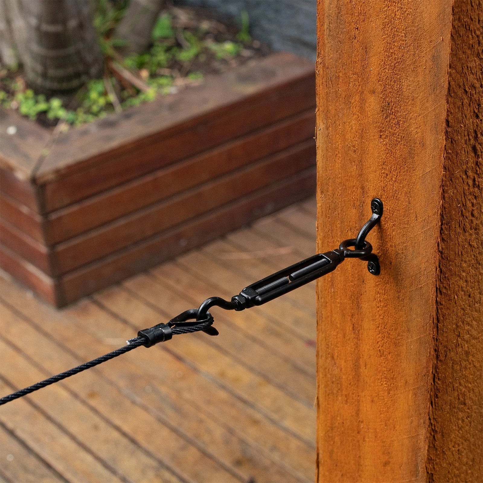 Enhance your balustrading and tensioning projects with the durable and reliable Taskmaster 5mm 316 Stainless Steel Hook/Eye Turnbuckle Kit. Designed for strength and corrosion resistance, this kit is perfect for a variety of applications including timber fixing points, plant wall climbing setups, and shade sail tensioning.